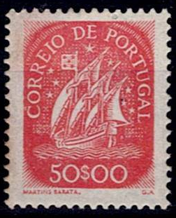 Portugal 1884 Caravela. Stamp Mf#633 of 50$00 salmon, smooth paper, perforation 14. New stamp, with gum