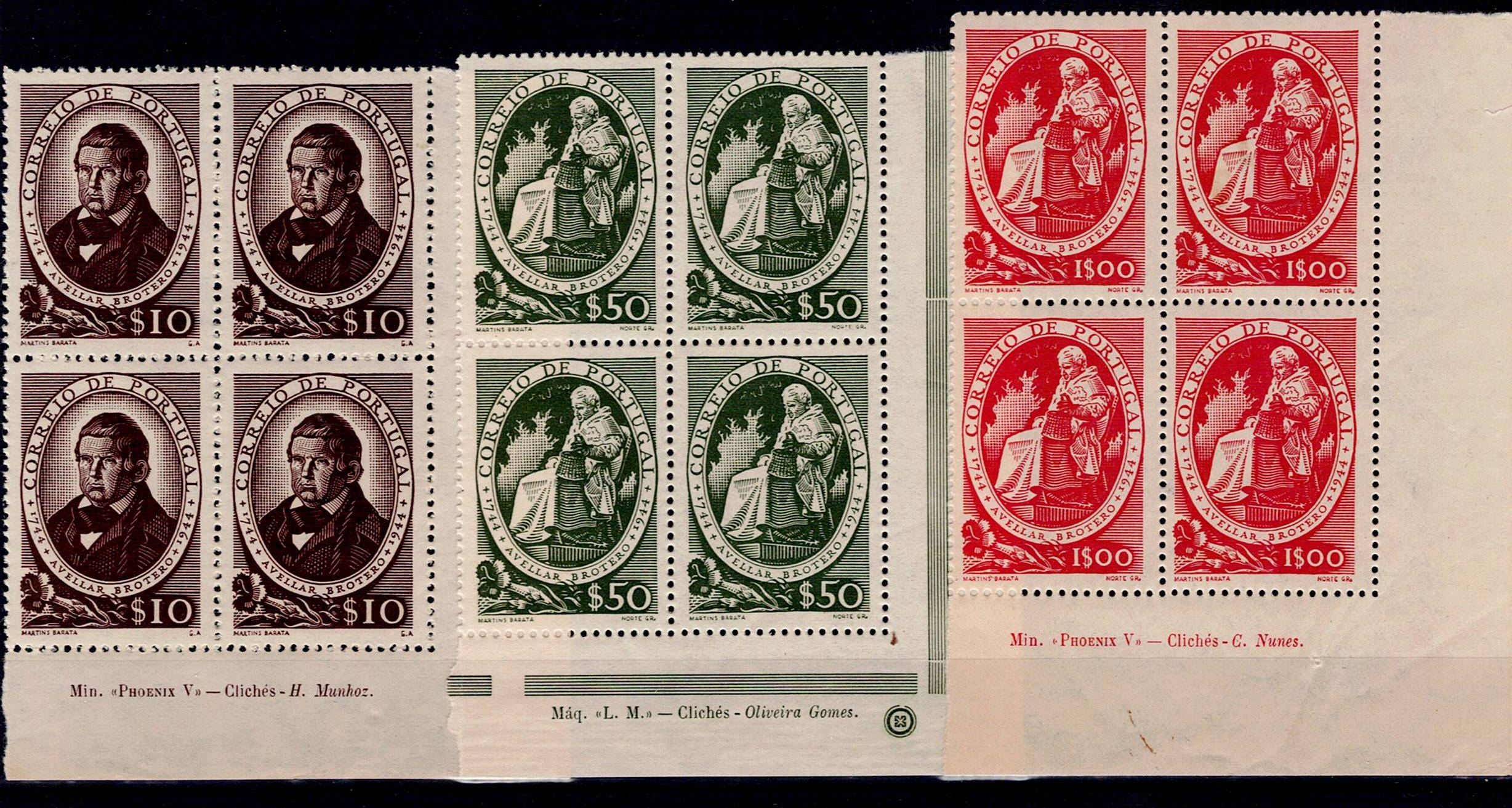 Portugal 1944 2nd Centenary of the Birth of Avelar Brotero. 3 BLOCKS lower right corner of sheet of the