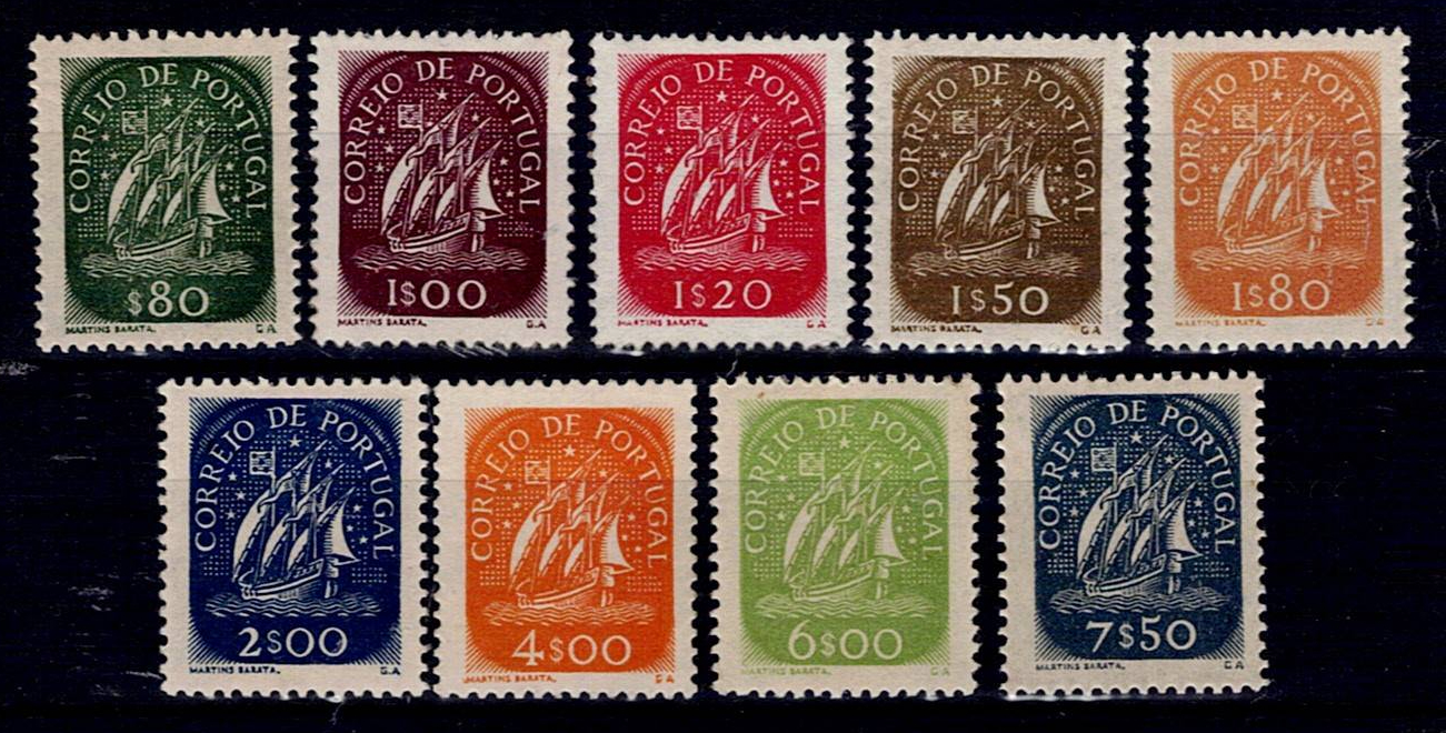 Portugal 1943 Caravela, new denominations and colors. Complete series Mf#696-704, smooth paper,