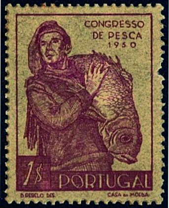 Portugal * 1951 – 3rd National Fishing Congress. MF732, 1$00, red on yellow, smooth paper, perforated