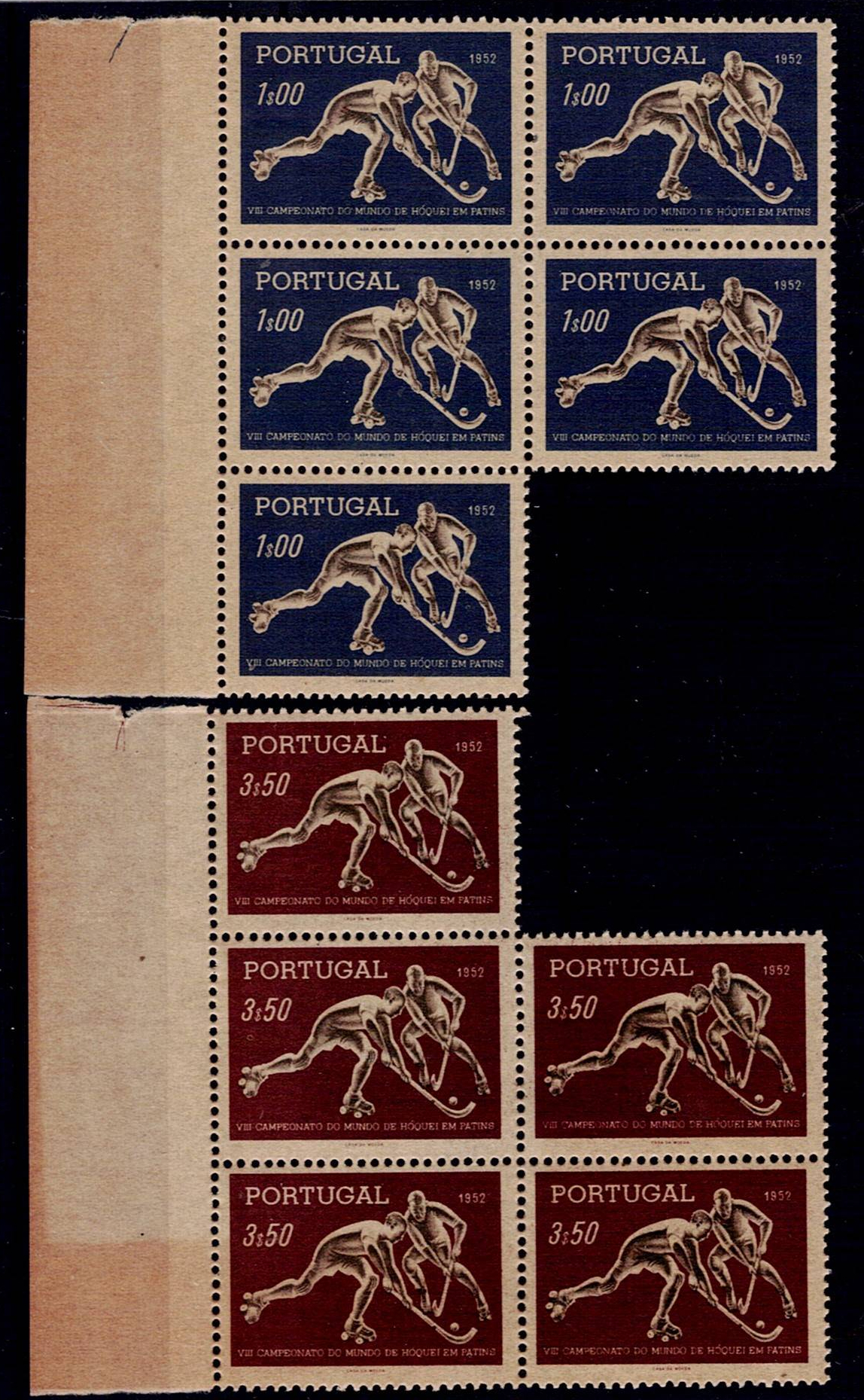 Portugal 1952 8th Roller Hockey World Championship. Complete series in 5-sheet edge blocks of