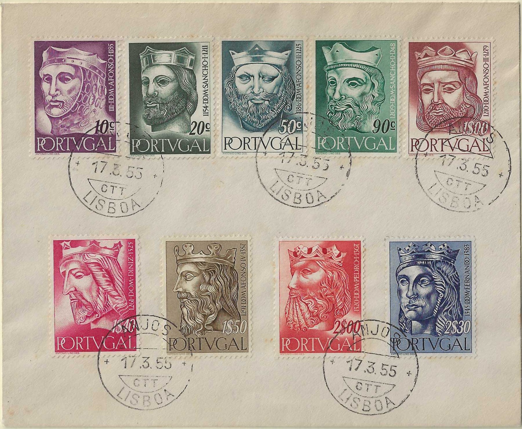 Portugal * 1955 – Kings of Portugal of the 1st Dynasty. MF 806/814. Complete series in obliterated FDC