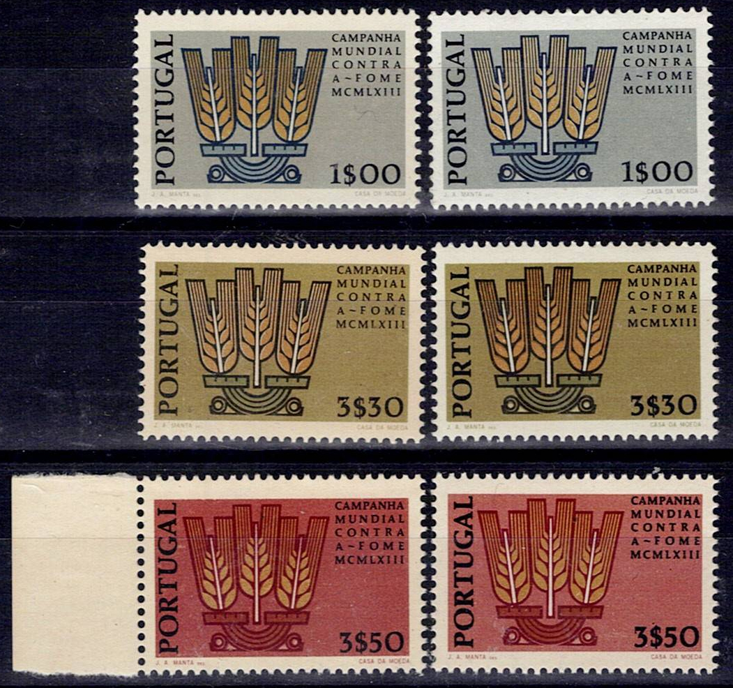 Portugal 1963 World Campaign Against Hunger. Complete series of stamps Mf#906a+907a+908a, on cream