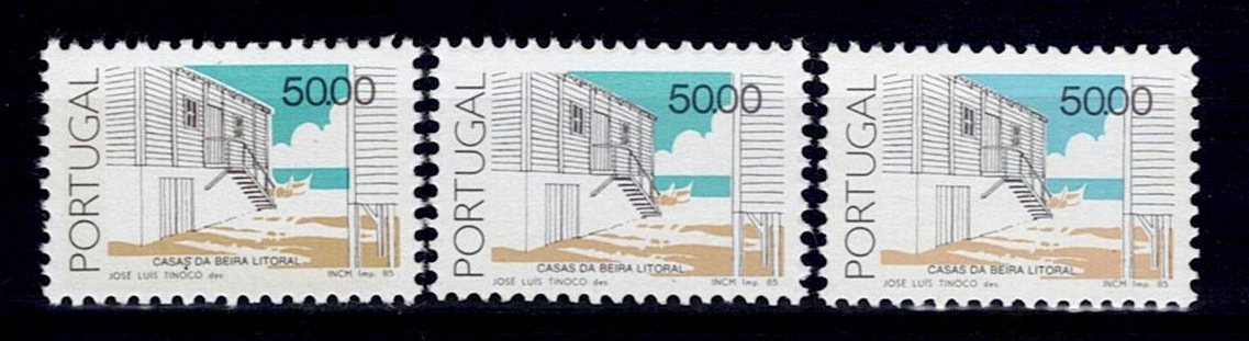 PORTUGAL, 1985/89, PORTUGUESE POPULAR ARCHITECTURE, MF 1721a/c, 50$00, 3 copies, yellow phosphorescent