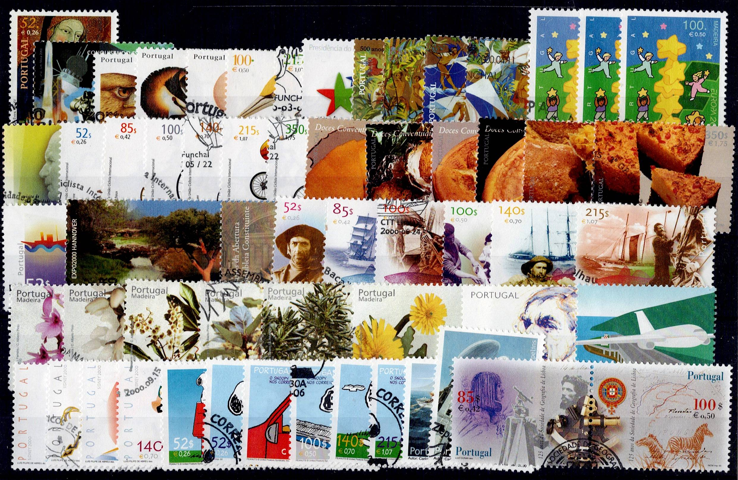 Portugal 2000 various series. Set of 20 complete series of used stamps from the year 2000, without
