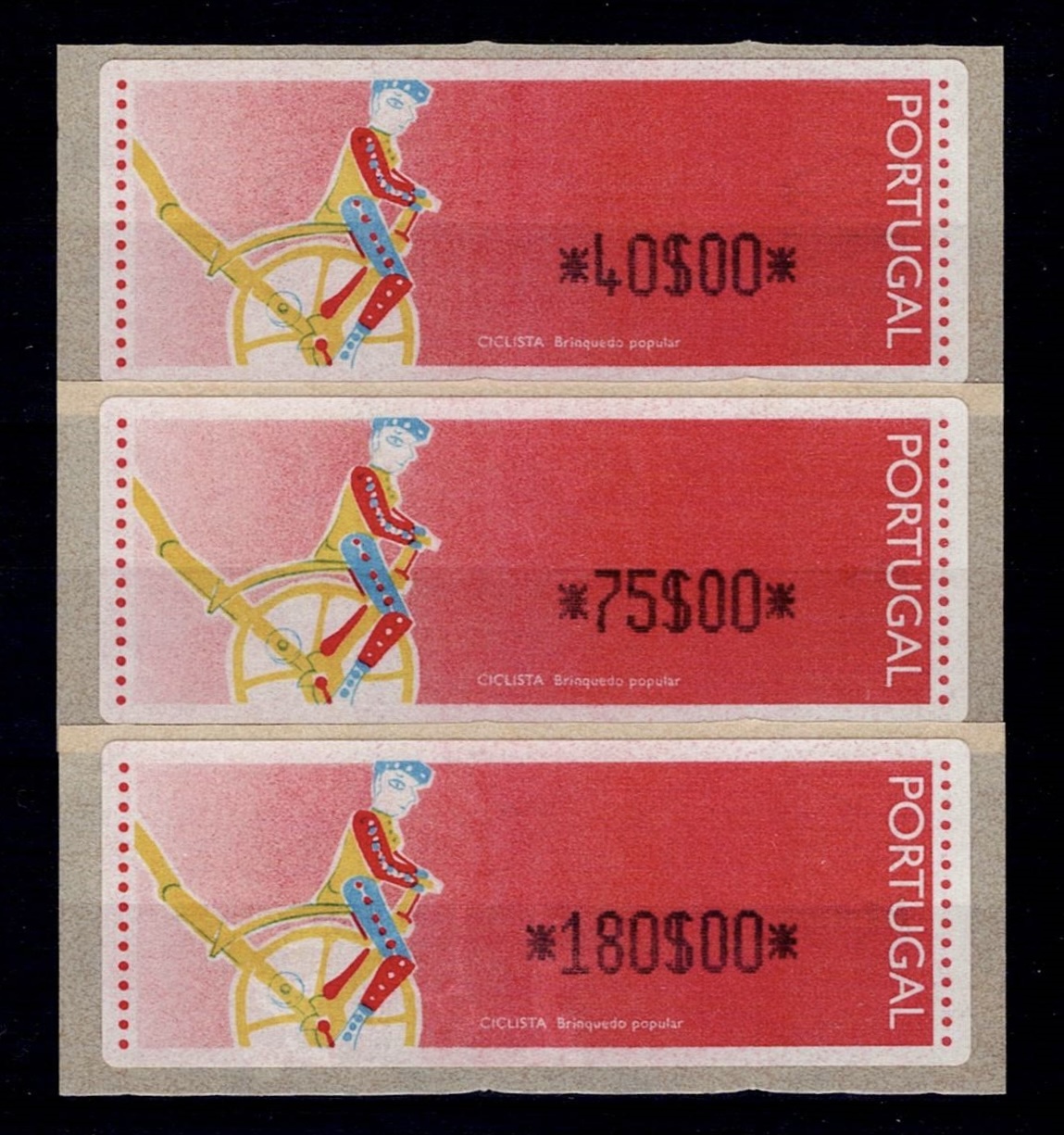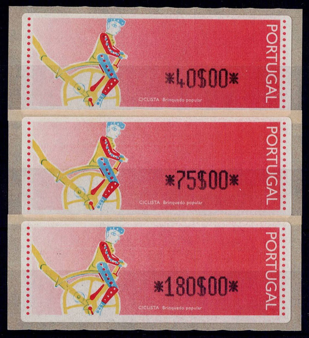 Portugal 1992 – Popular Toys – Cyclist. CROUZET machine. MF#ETQ6a. Complete series for the Correio