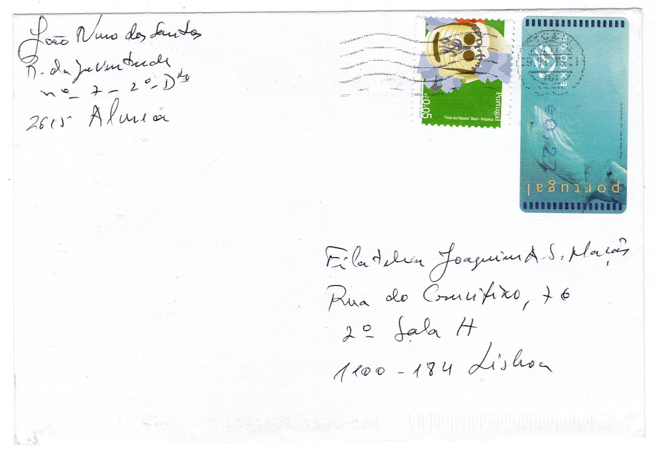 2002 Expo 98 SMD type labels, rate in Euros. Envelope circulated from Alverca to Lisbon in 2011 with