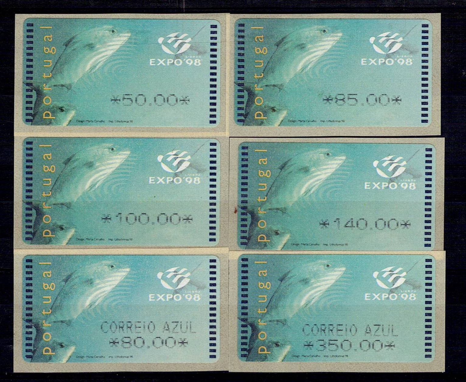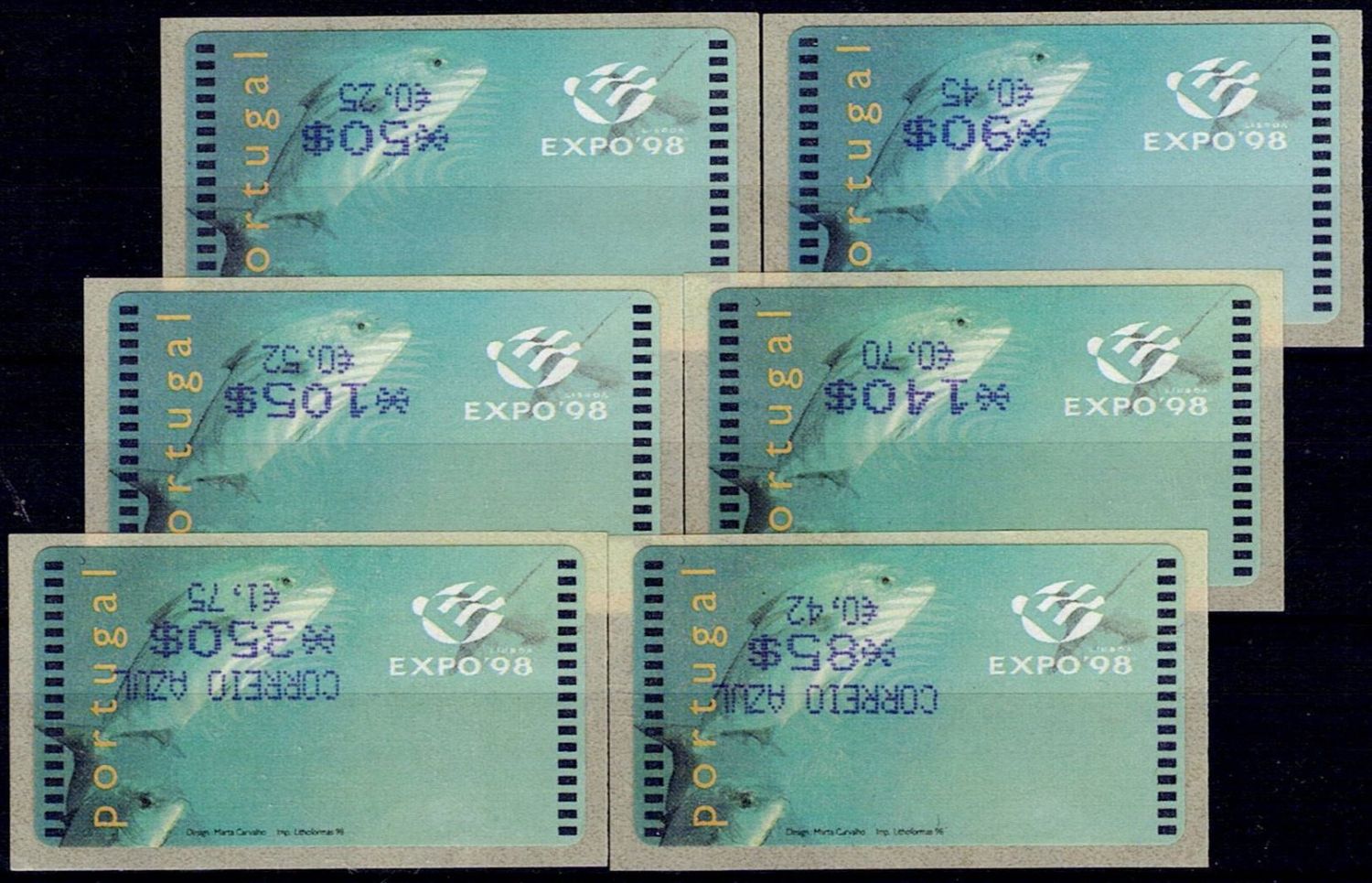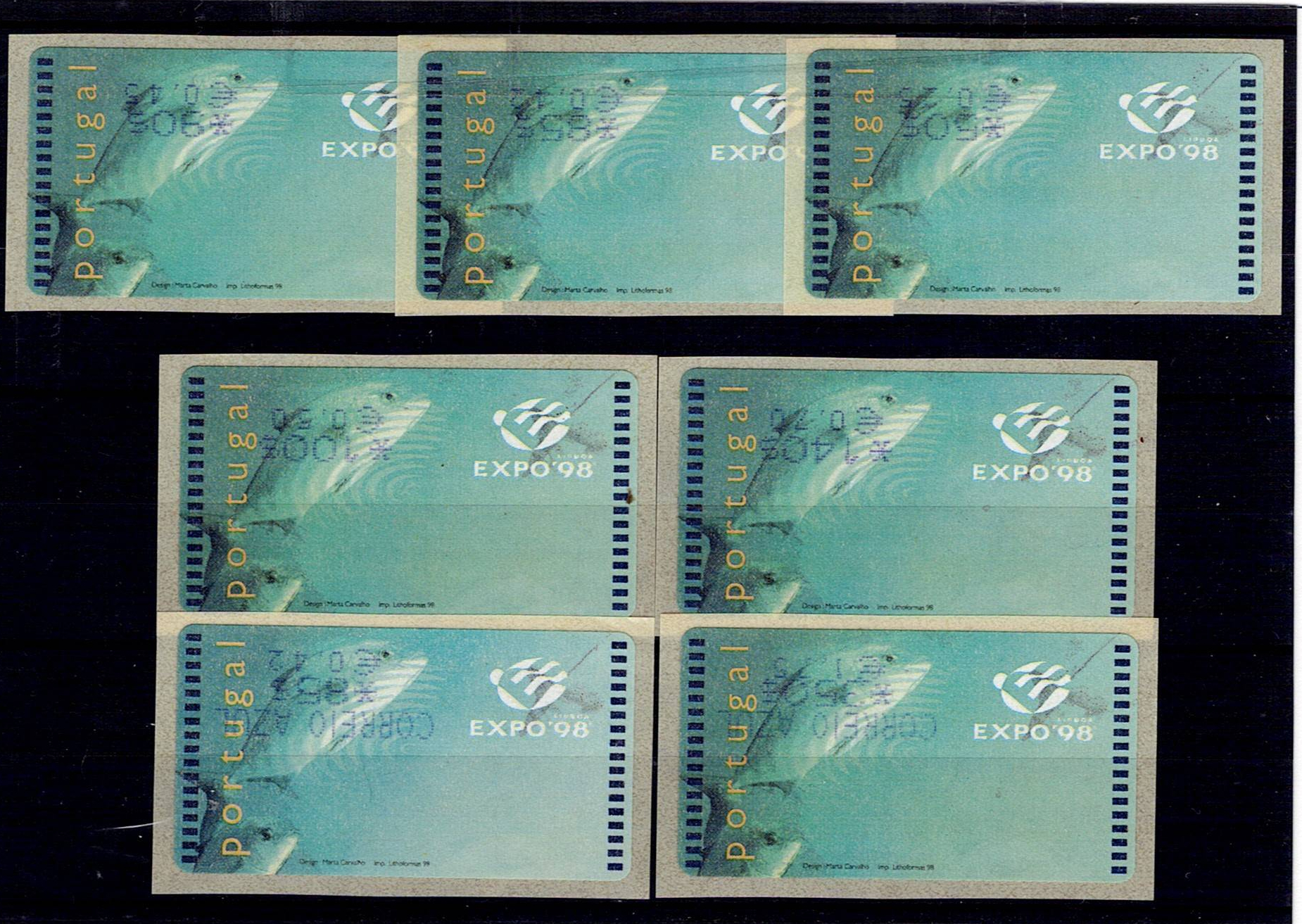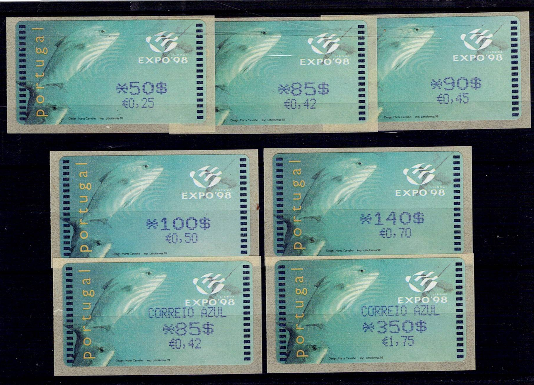 PORTUGAL, 1998, EXPO'98, AMIEL Machine, with comma. MF ETQ16B + ETQ 16Ba. Complete series of ordinary