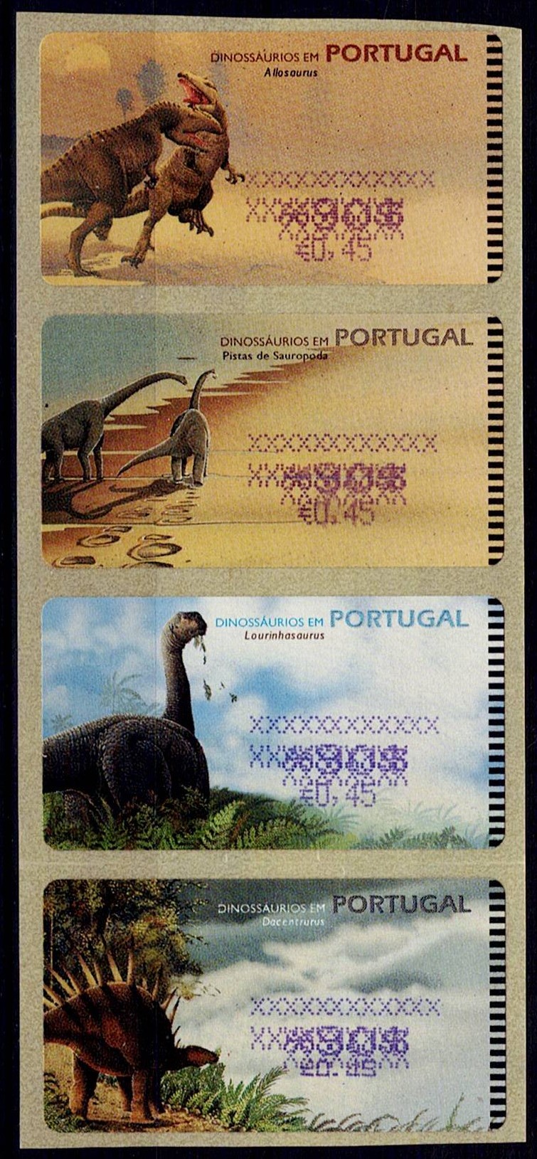 Portugal 1999 – Dinosaurs in Portugal. SMD machine. Double rate display in violet. Mf#ETQ20Ah+Am.
