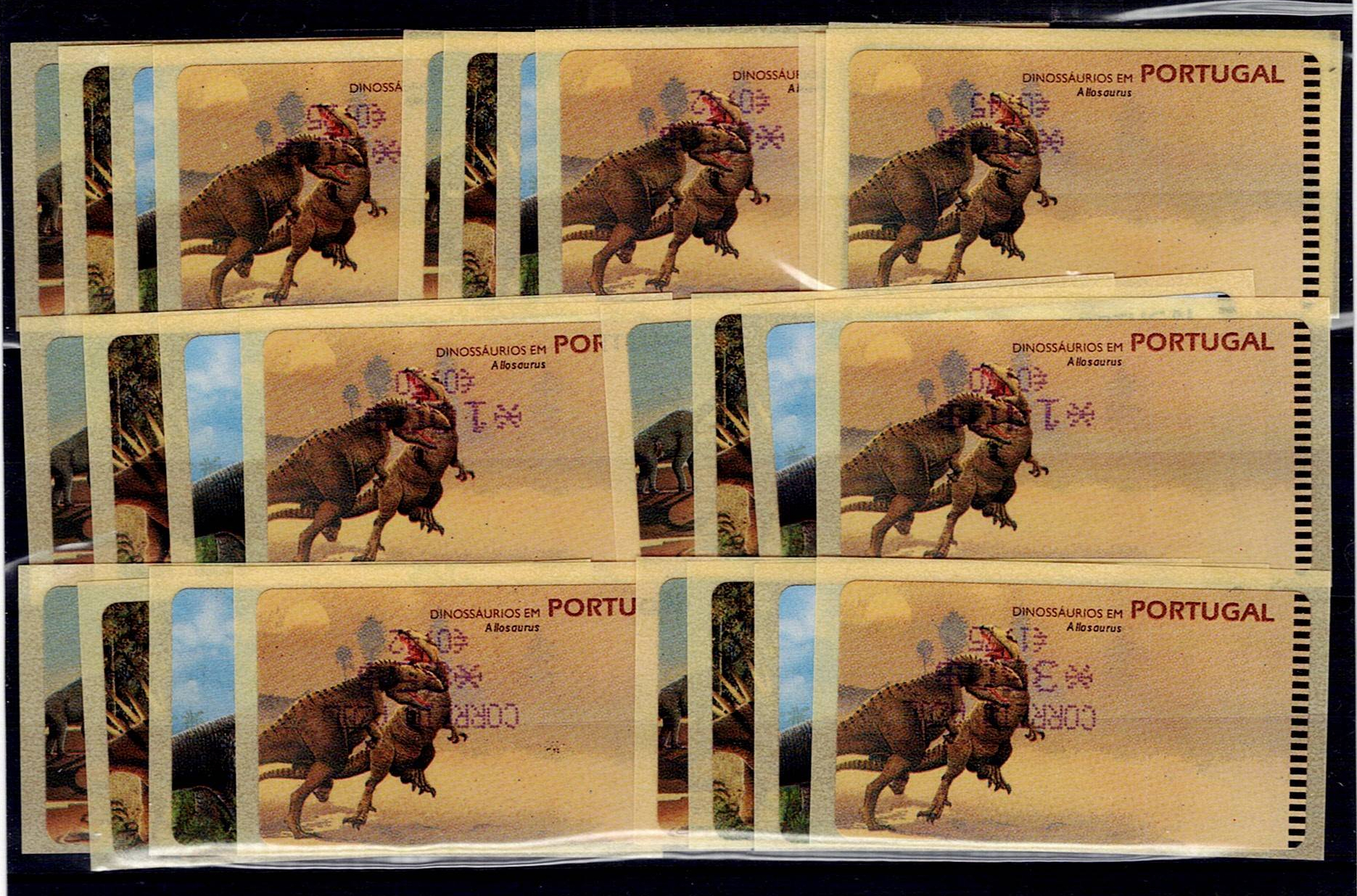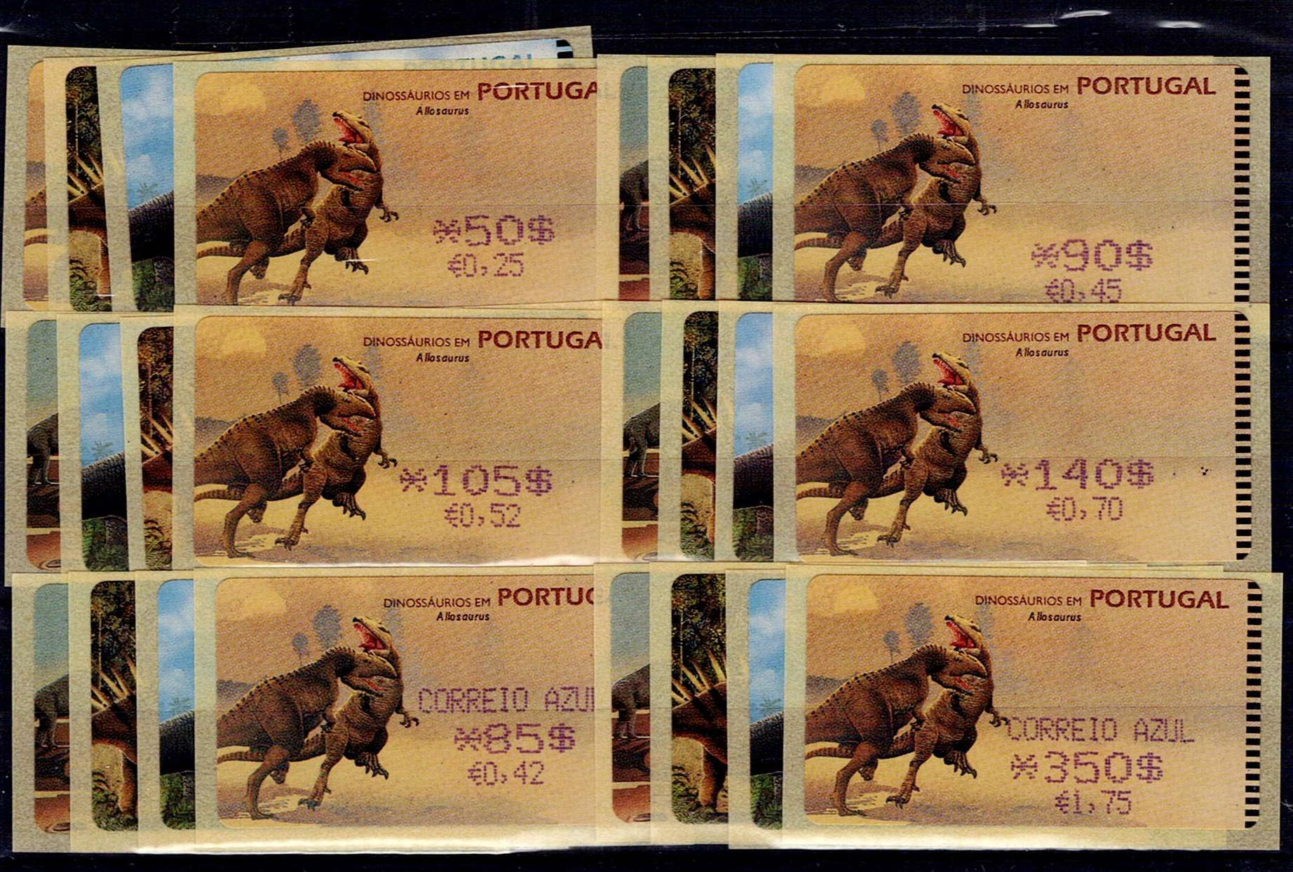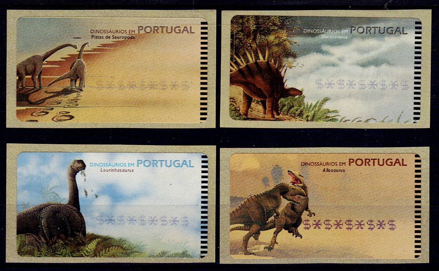 PORTUGAL, 1999, Dinosaurs of Portugal. AMIEL Machine. MF ETQ 19A. Complete series of ordinary mail and