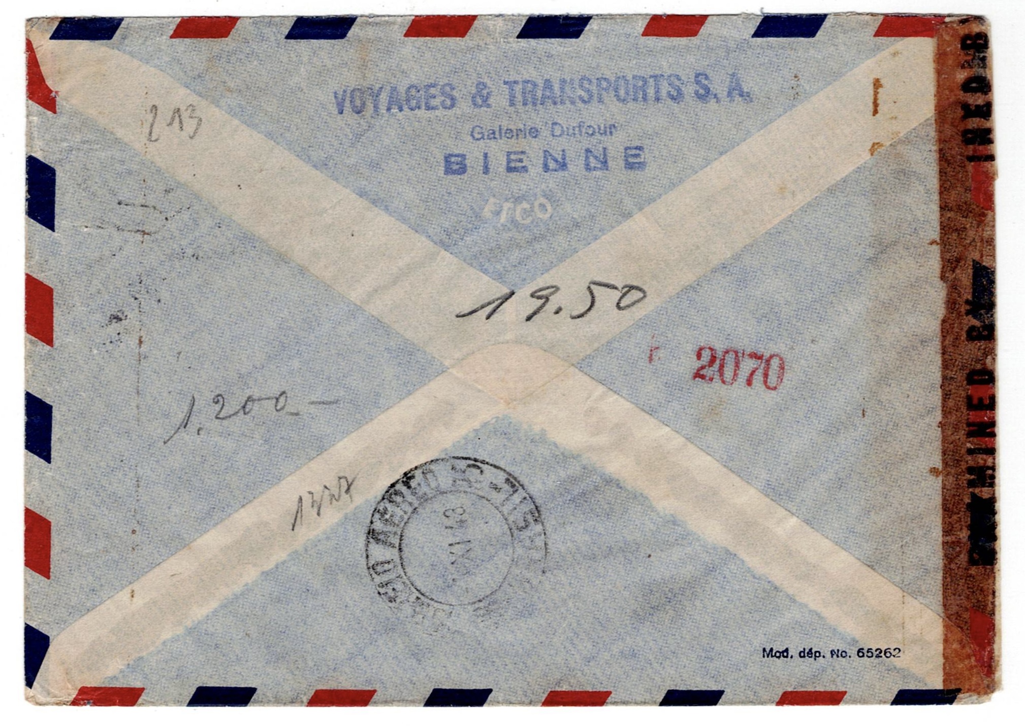 Airmail. Portugal. Switzerland. WW2. Letter sent from Bienne in Switzerland on 31.8.1943, sent to