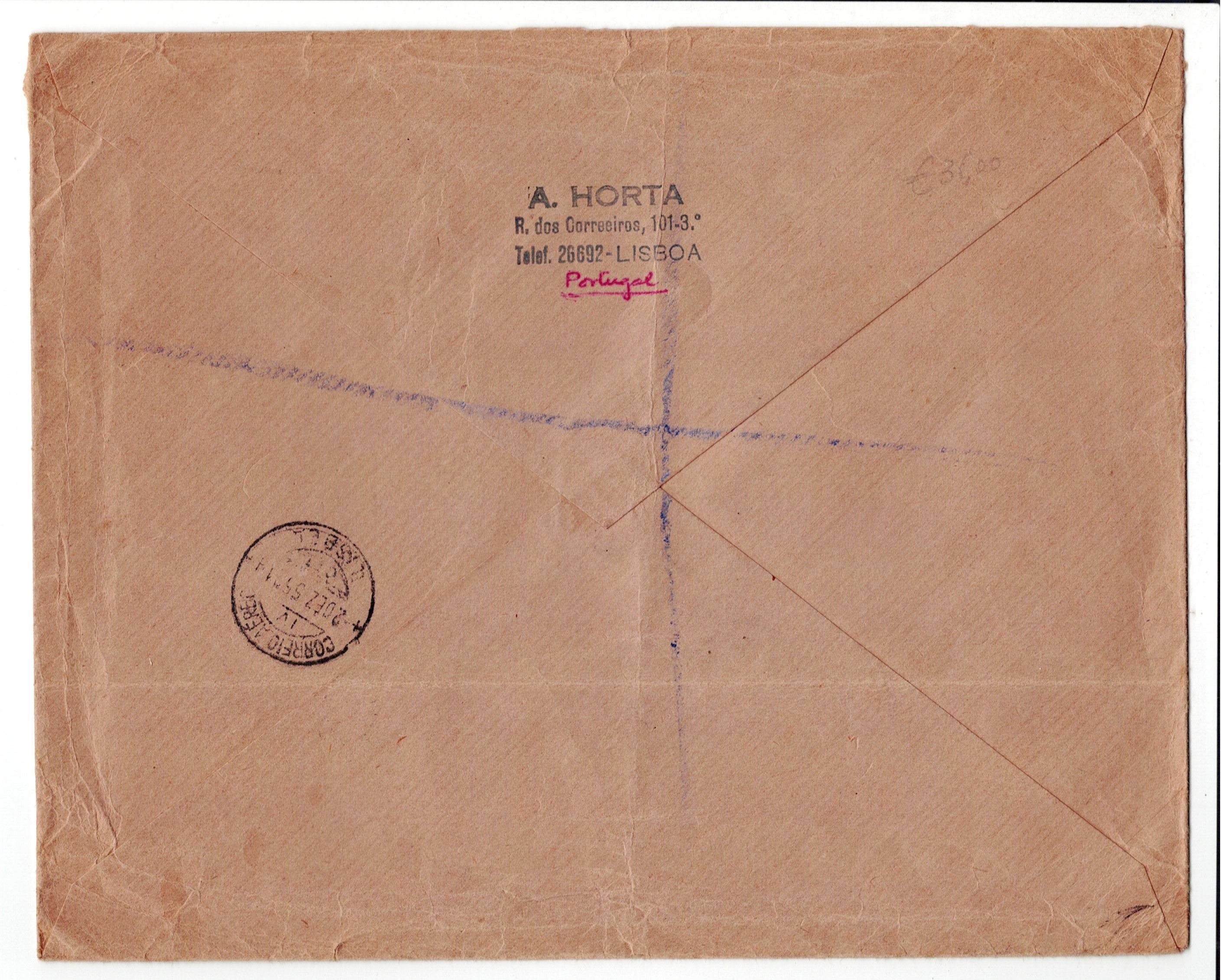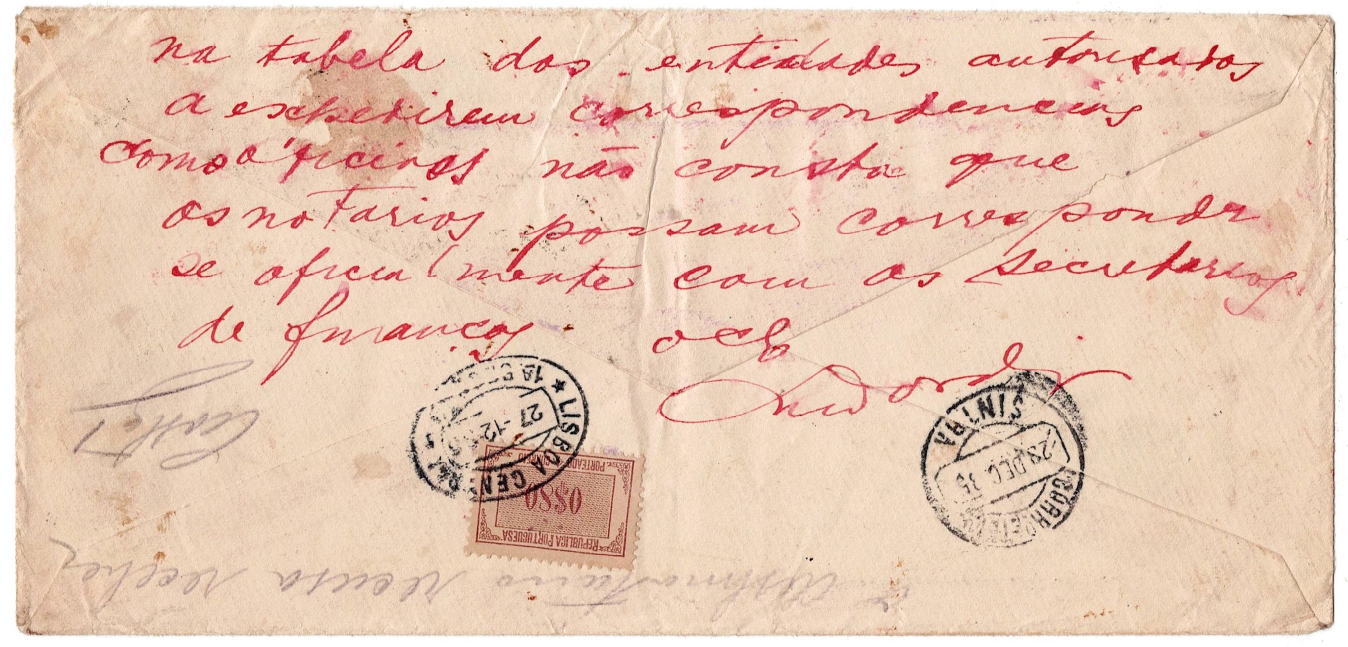 Letter indicated as being from the SR (Republican Service) and stamped Portuguese Notary/Lisbon, sent