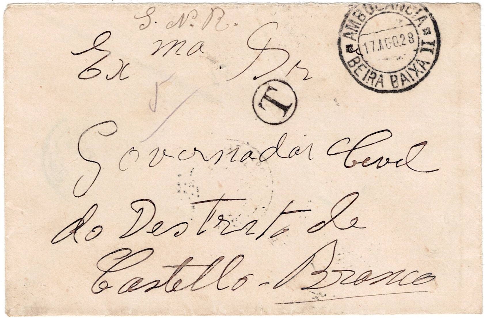 (National Service of the Republic) as it was addressed to the Civil Governor of the District of Castelo Branco. As it was not considered an official service letter, it was not exempt from franking, so the post office applied (T) and sent it