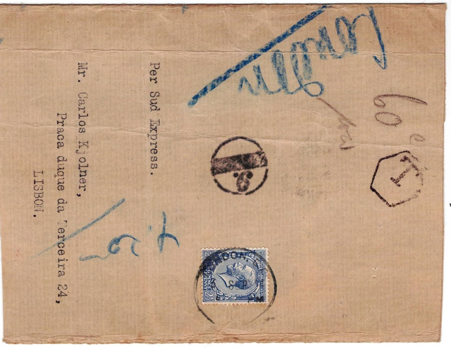 February 1906, unfranked, postmarked in Lisbon with a 20 reis stamp.(Image 1)