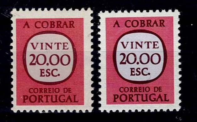 1774 imagePortugal 1967-1984 Postage stamped with the legend "collect". Lot with 2 stamps Mf#P79 and 79a, 20$00, PLAIN paper and THICK PAPER variety, perforation 12. Both stamps are new, with gum and without hinge, without defects or repairs, with good color. Catalogue value € 30.(Image 1)