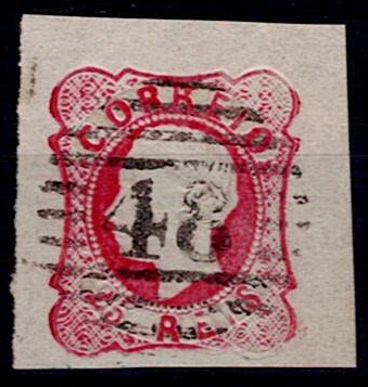 1785 imageAzores 1862-64 Precursors – D. Luis I Borja Freire. Mf#16, 25 réis carmine, smooth paper. Used copy, 2 very good margins and 1 short, with good color, without repairs, obliterated with a 4-3-4 type stamp struck in black “48 – ANGRA (AZORES)”. Catalogue value €30.(Image 1)