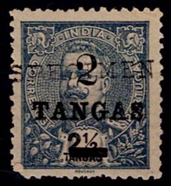 India 1905 D. Carlos Mouchon with surcharge. Stamp Mf#199 2 tgs w/o 2.5 tgs blue-green, smooth to