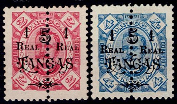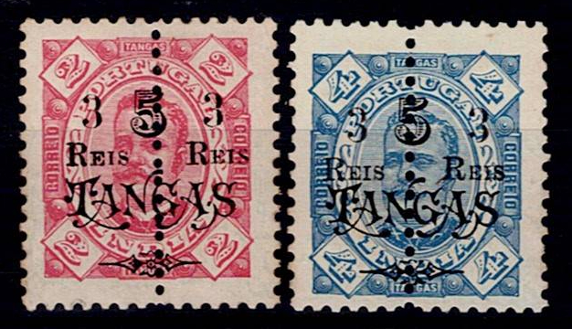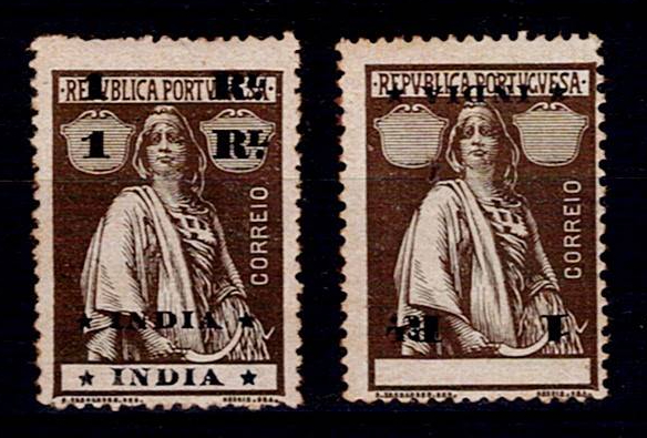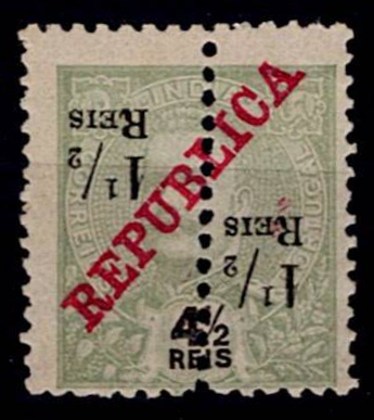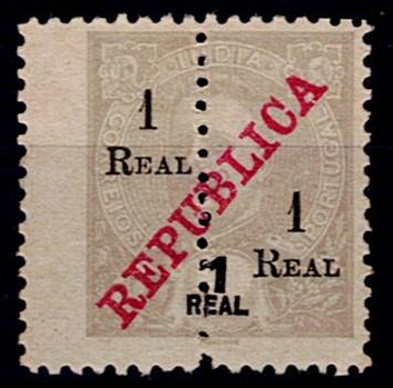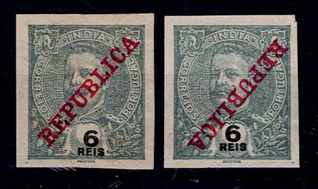 India 1911-13 D. Carlos, perforated in the middle and with surcharge and with Republic surcharge.