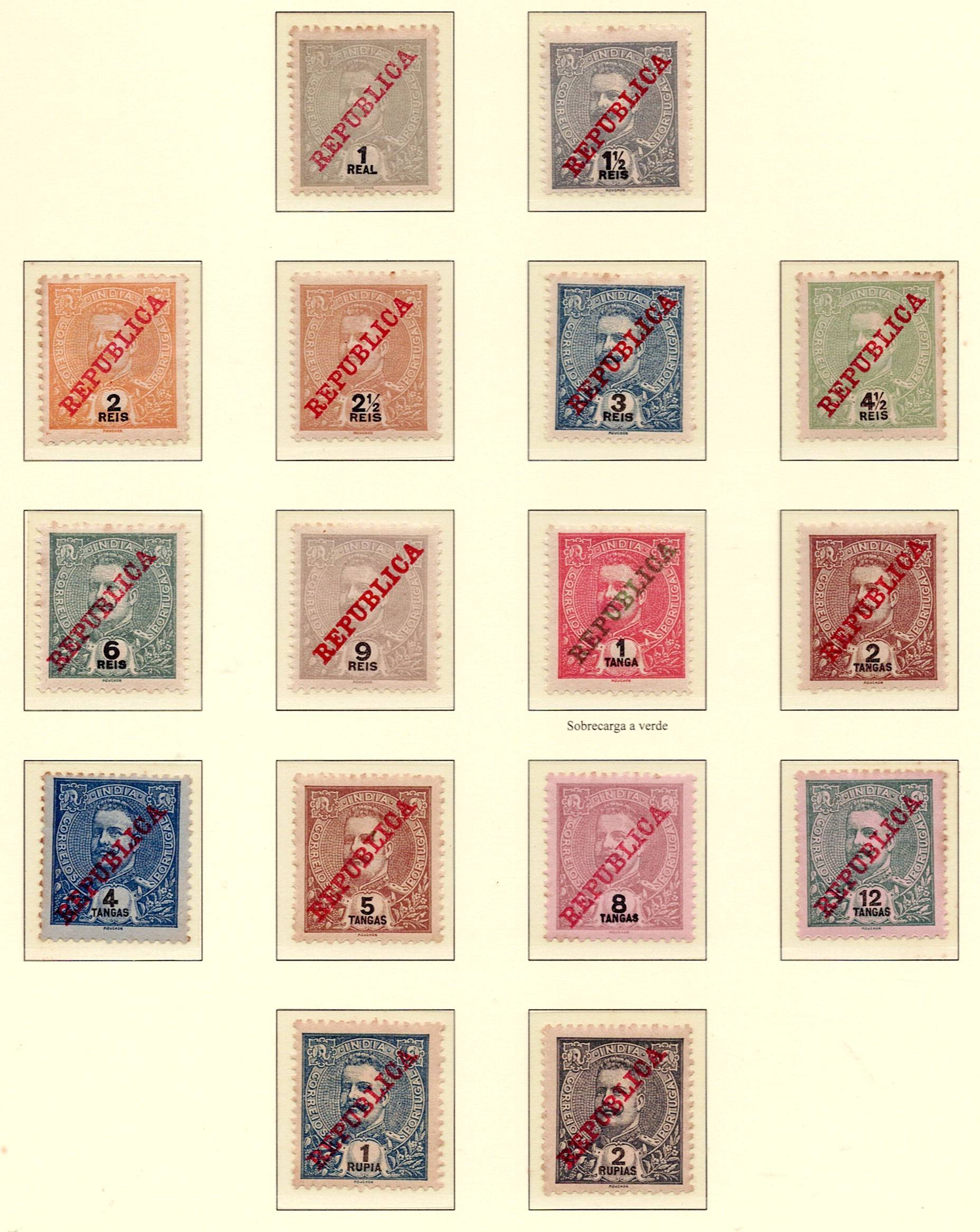 India 1911 D. Carlos, with Republic overprint. Complete series of stamps Mf#200-215 smooth paper /