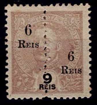 India 1911-13 D. Carlos, perforated in the middle and with surcharge. Stamp Mf#221c, of 6 reis s/ 9