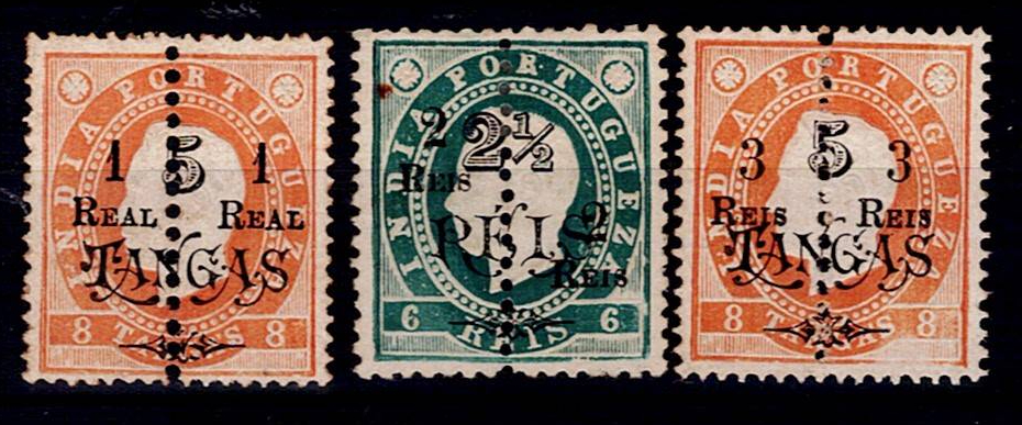 India 1911-13 D. Luis I, perforated in the middle and with surcharge. Complete series Mf#222a+223+224b.
