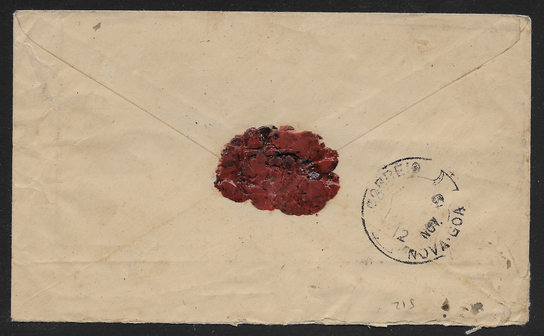 Mouchon issues. Nova-Goa registration transit on Nov 12th on back. “Mute” Velha-Goa village CDS with hand written date across date bridge. VERY RARE. Registration label. CE 312 x 2 and CE 264.(Image 1)