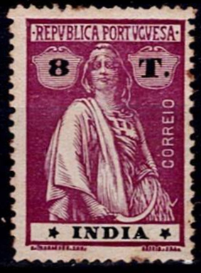 India 1914 – D. Carlos I, Mouchon, with locally typed "REPUBLICA" overprint, perforated in the middle.