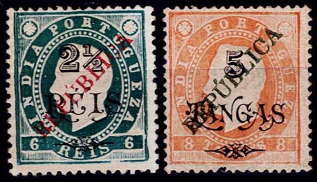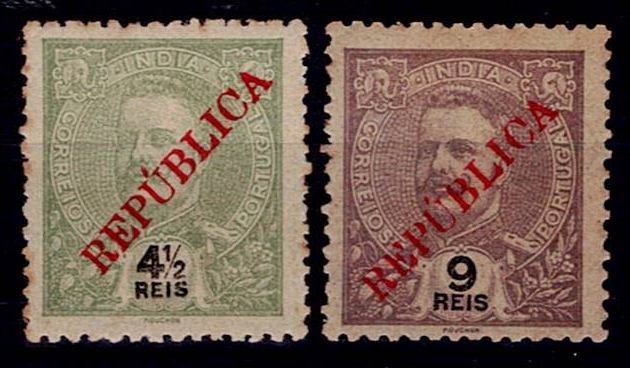India 1914 D. Carlos I, Mouchon with local Republic overprint. 2 stamps Mf#275+276, 4.5 reis + 6 reis,