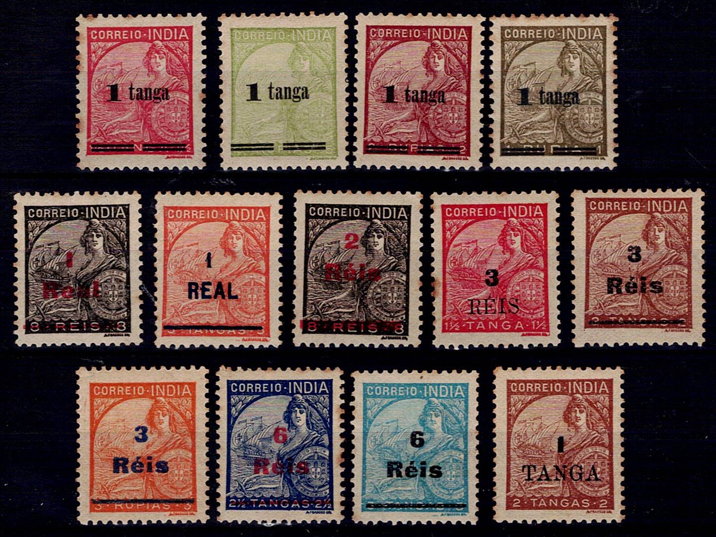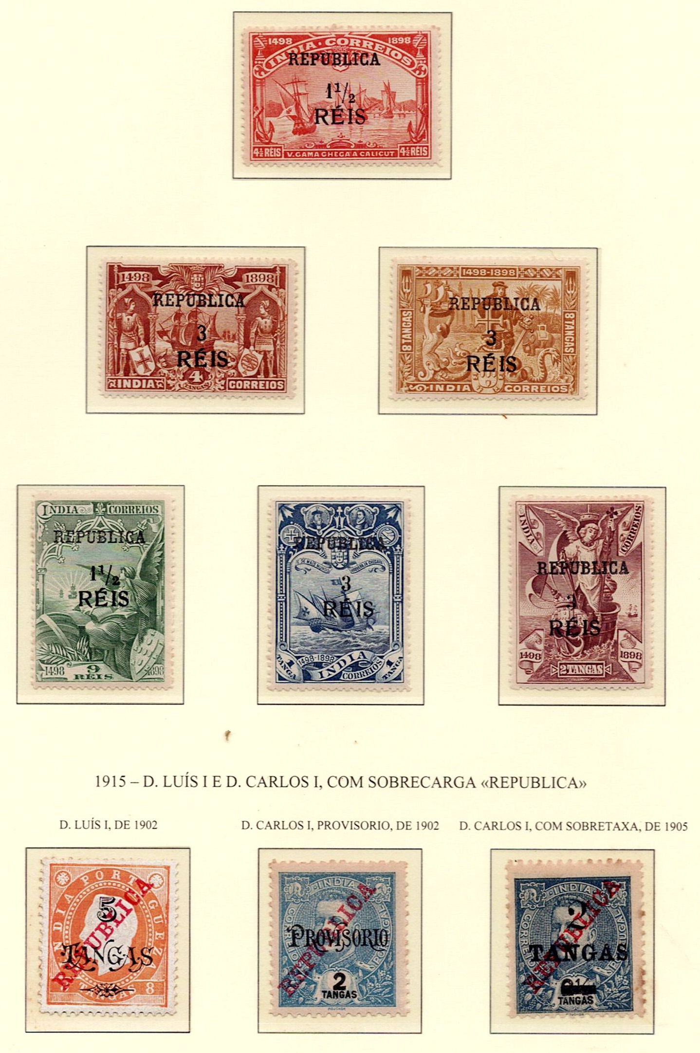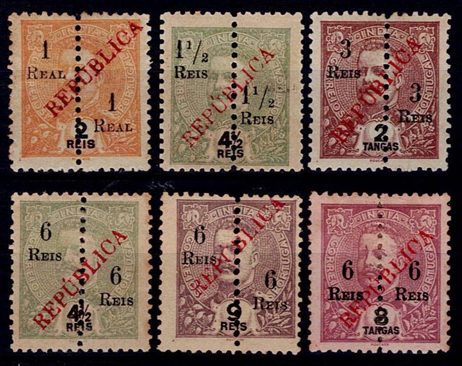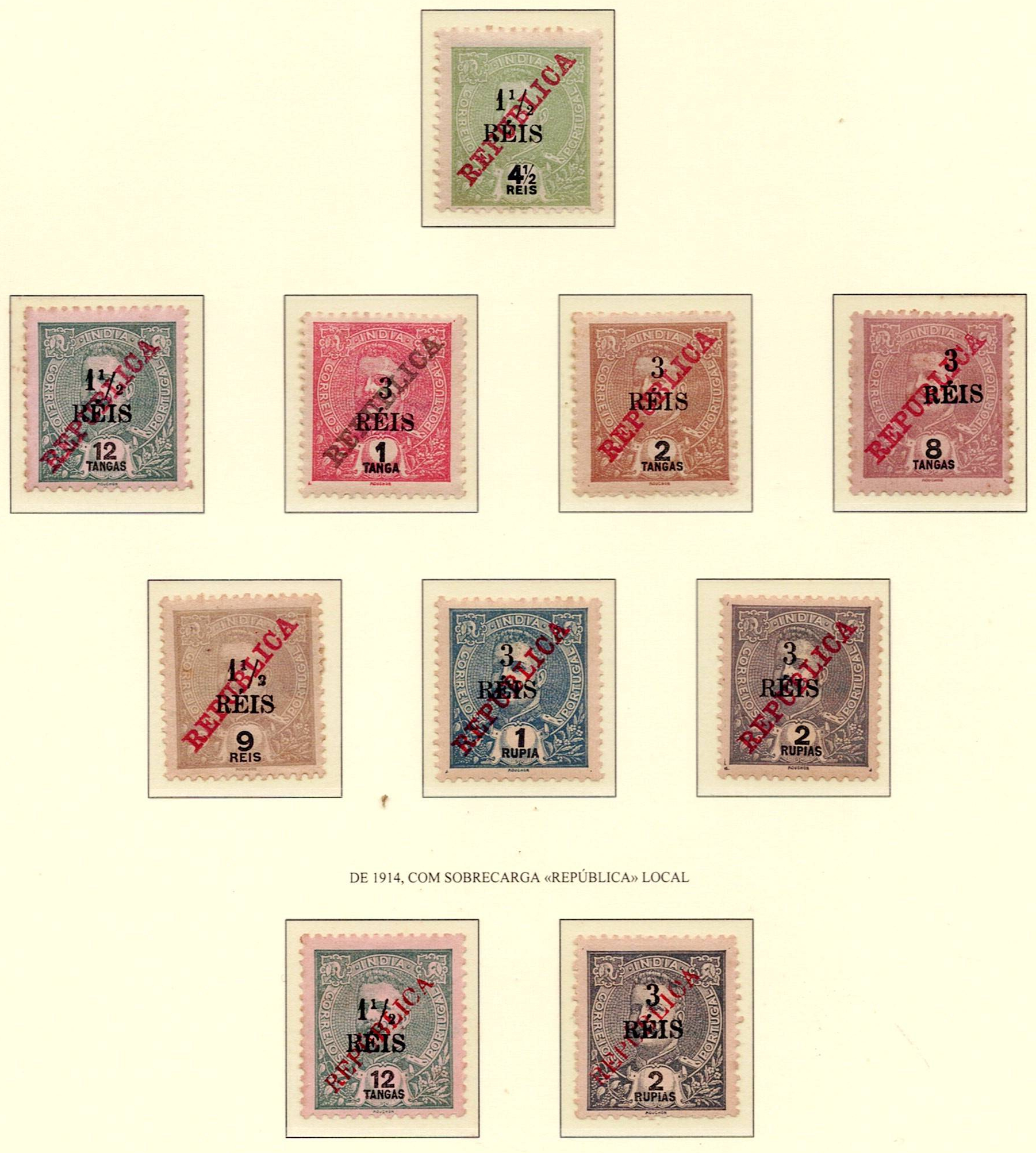 India 1914 – D. Carlos I, Mouchon, with "REPUBLICA" overprint and locally typed surcharge. Complete