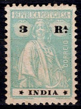 India 1914 D. Luis I with local Republic overprint. 2 stamps Mf#282+283b, of 2.5 reis w/o 6 reis green