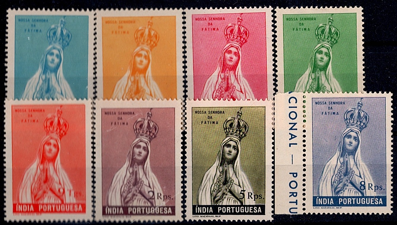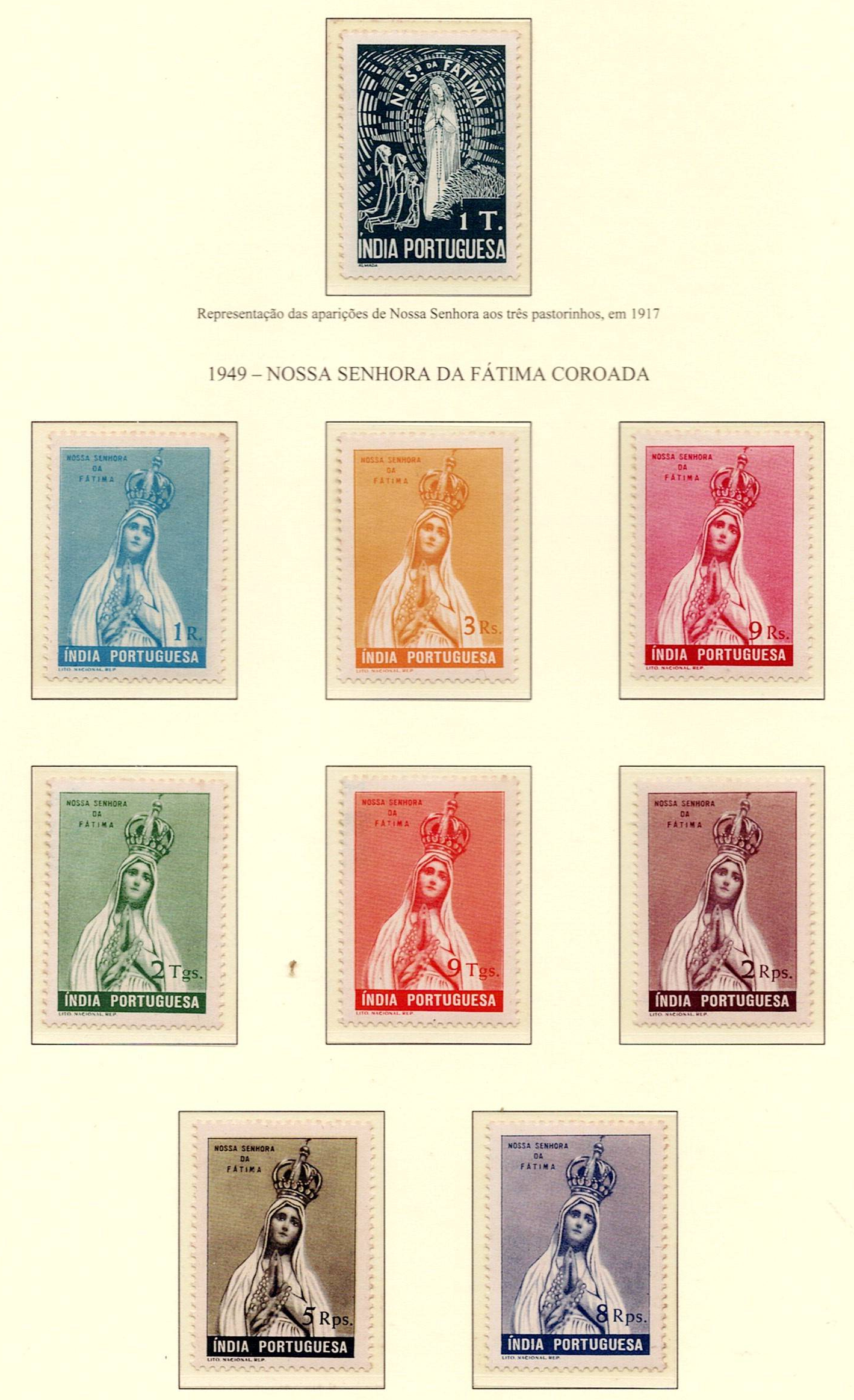 India * 1949 – Our Lady of Fátima, crowned. MF 390/97. Complete series, new, with original hingeless
