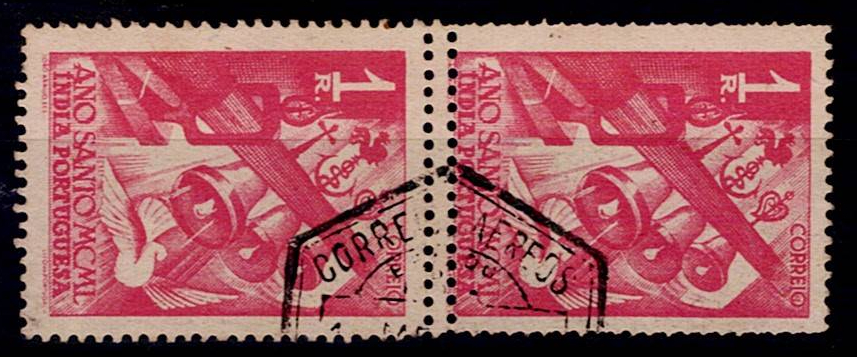 India 1951 Holy Year. Vertical pair of stamp Mf#407, 1 real carmine, smooth paper, 13.5 indentation