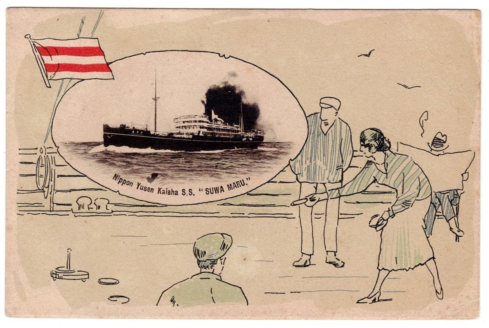 2015 imageSea Mail. Coloured illustrated postcard, with advertising image for Royal Mail packets, written on board the RMSP “Aragon” on 2.12.1906, 1d postage, with stamp “POSTED ON THE HIGH SEAS, unloaded in Lisbon where it bore the PAQUETE mark, and dated 3.12.1906.(Image 1) (Image 2)