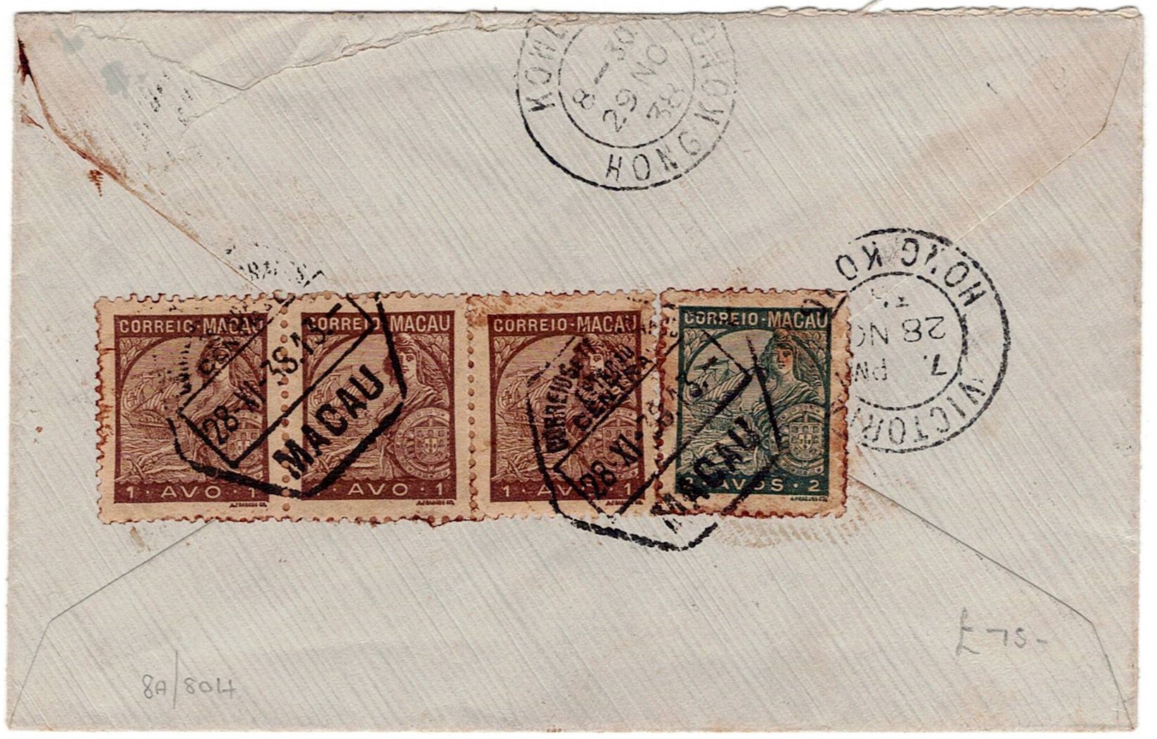 2001 imageMacau. 1938 Letter of 28.11.1939 5ths franchise (Standards) for Hong Kong 28.11(Image 1) (Image 2)