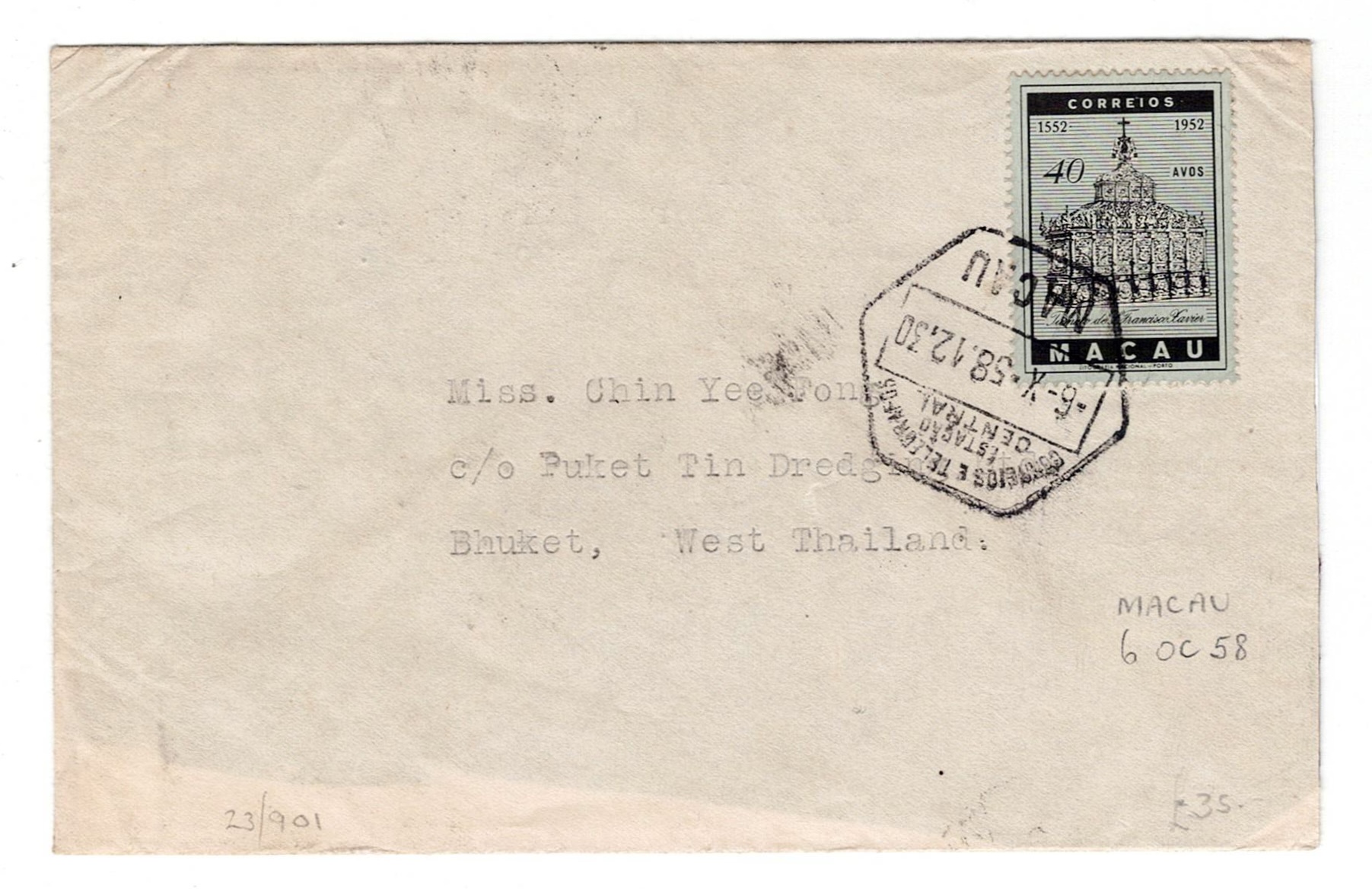 2003 imageMacau. 1958 Letter of 6.10.1958 40-cent postage to Bangkok 15.10.(Image 1) (Image 2)