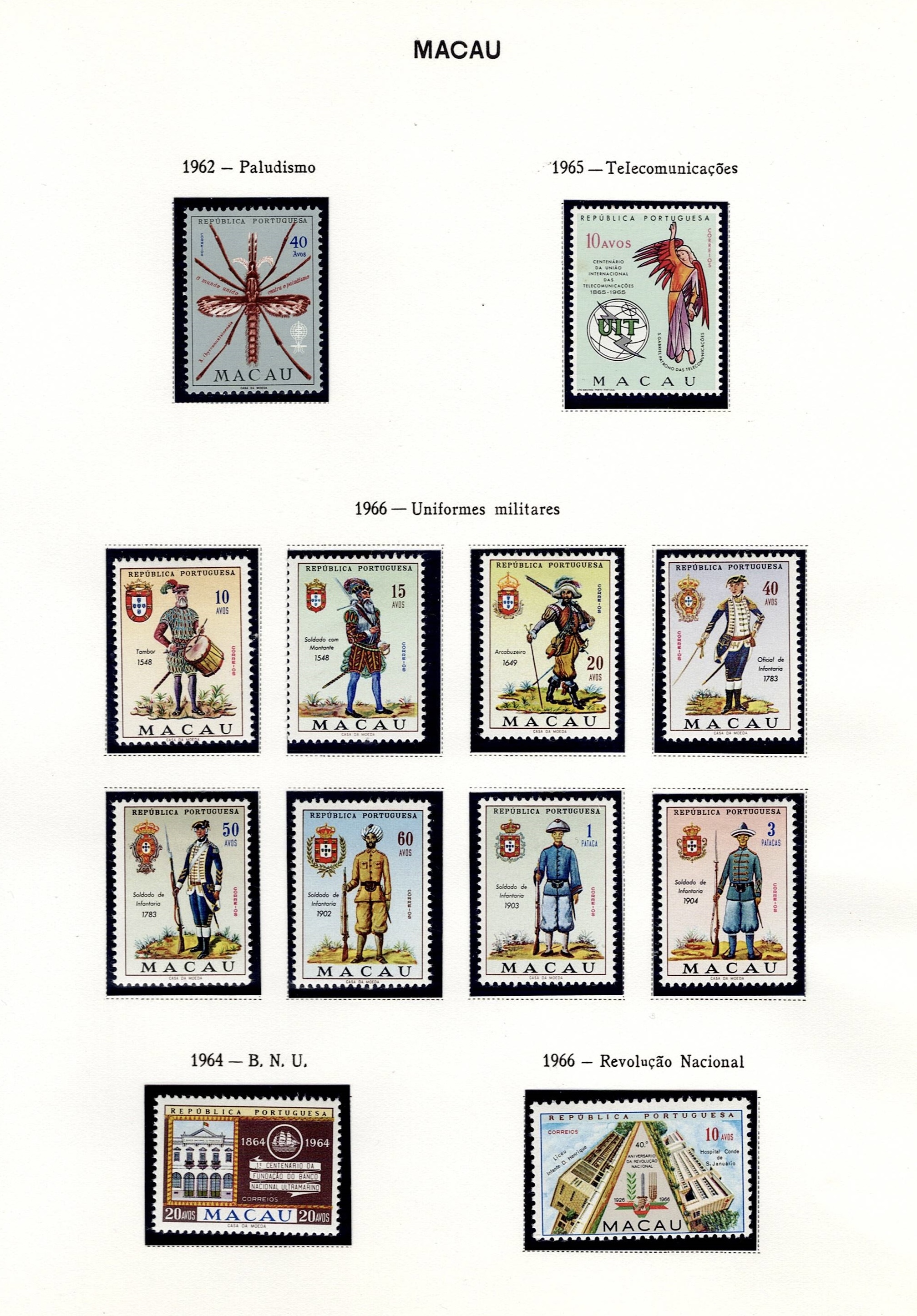 2005 imageMacao 1962-1966 Uniforms + Malaria + BNU + ITU + 40th Anniversary of the National Revolution. Set of 5 complete series of stamps Mf#403-414 of new stamps, with gum (with hinge the stamps of the uniform series), with good color; ITU stamp with oxide spot. Catalogue value €82.(Image 1)