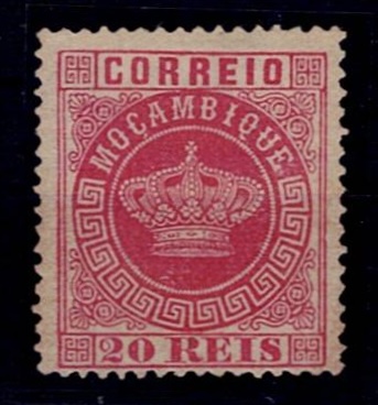 2013 imageMozambique. Stamp crown of 20 reis, not issued, New, without gum. No defects or repairs B.see (L. Frazão. The unissued red 20 reis stamp of Mozambique. Stamps and Coins No. 53, Dec. 2015(Image 1)