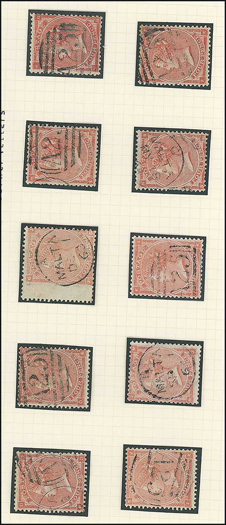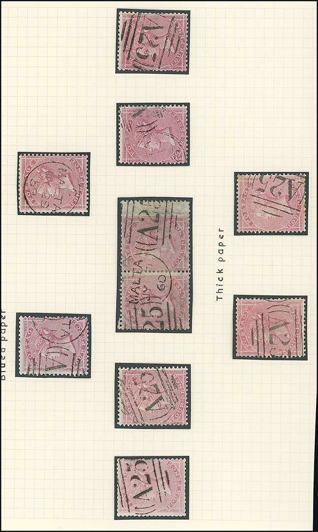 Malta: A25 Cancellations: 1862 4d. red, ten used examples, good to fine. S.G. Z48. (Image1)