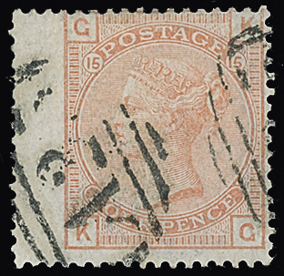 Malta: A25 Cancellations: 1876 4d. vermilion plate 15 KG, fine used. S.G. Z50. Photo. (Image1)