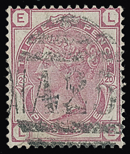 Malta: A25 Cancellations: 1881 3d. rose plate 20 LE, fine and very rare. Ex Coates. S.G. Z45. Photo.