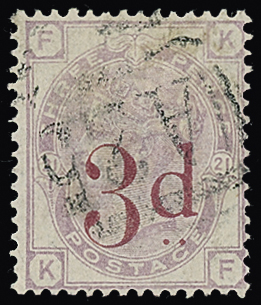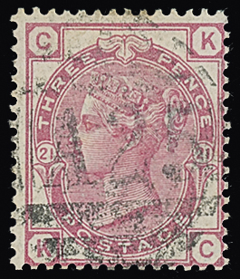 Malta: A25 Cancellations: 1881 3d. rose plate 21 KC, fine and very rare. Only two examples believed to exist. Ex Coates. S.G. Z45. Photo. (Image1)