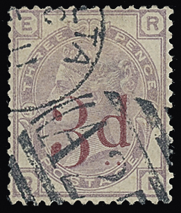 Malta: A25 Cancellations: 1883 3d. on 3d. RE, fine and scarce. S.G. Z46. Photo. (Image1)