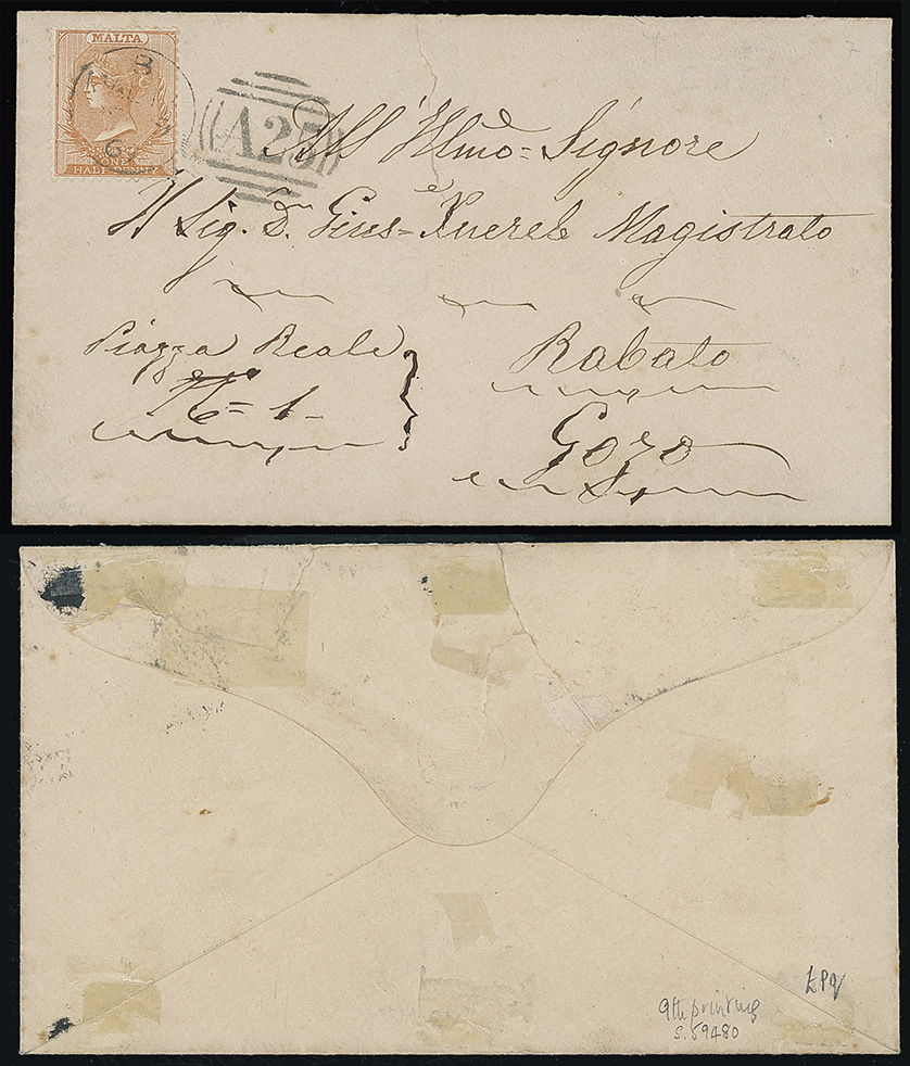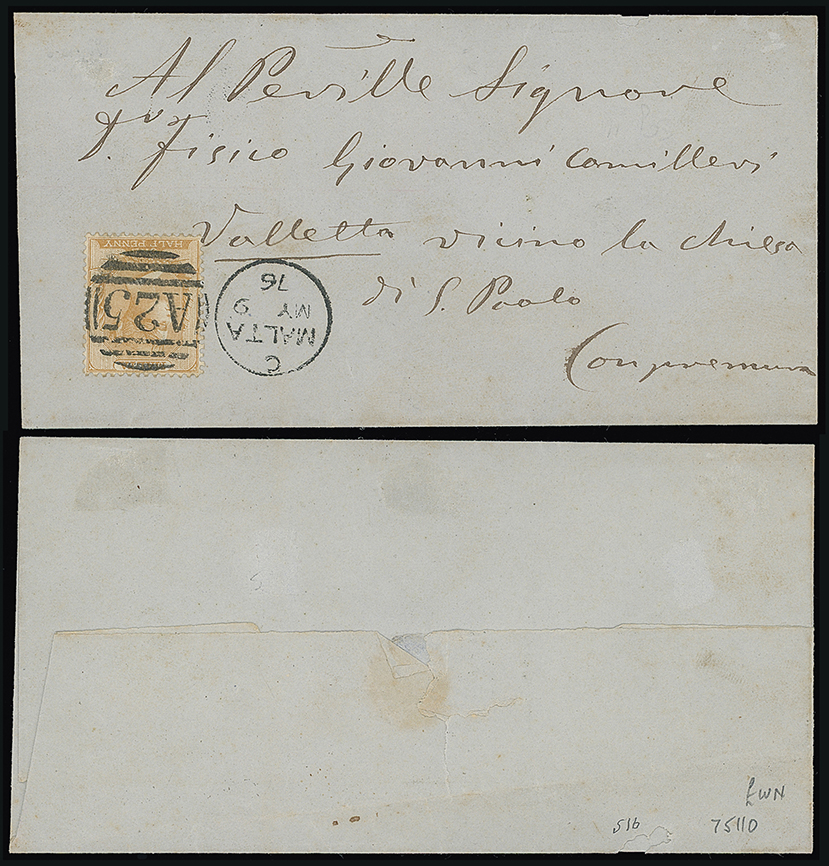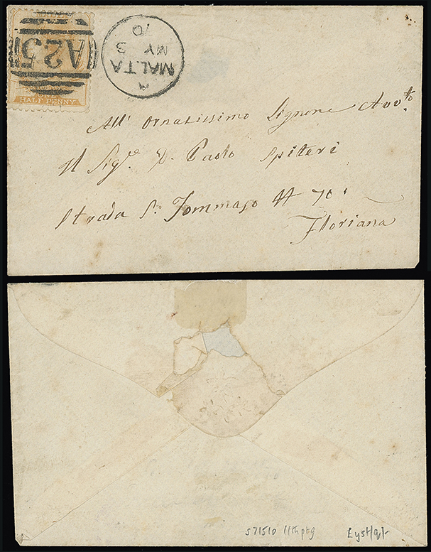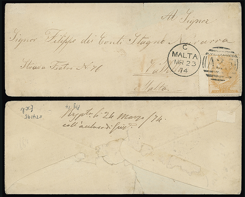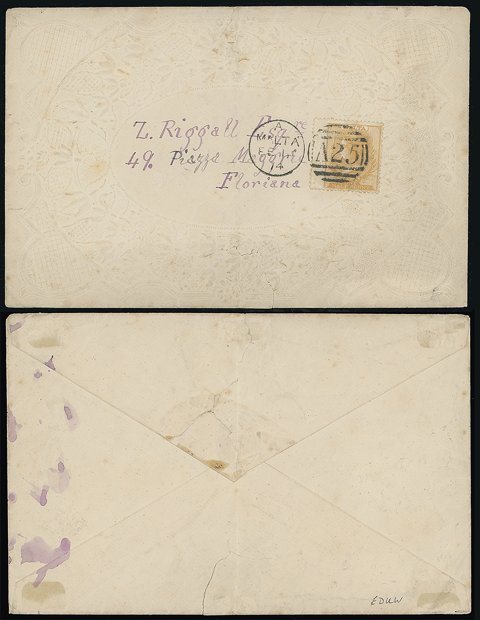 duplex. Valentine envelopes of this period used from Malta are very uncommon. Ex Cann. Photo. (Image1)