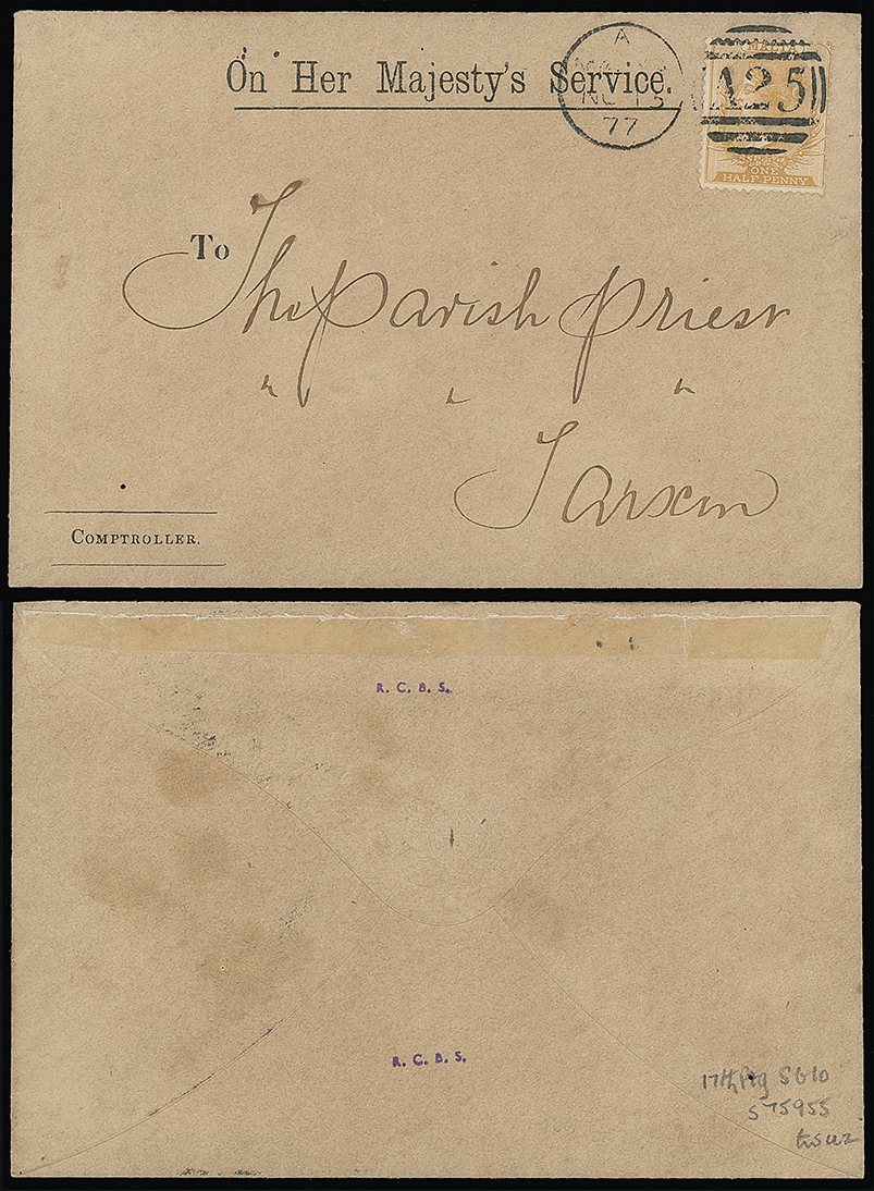 Malta: Issued Stamps: Queen Victoria: 1863-81 Watermark Crown CC, perf. 14 1/2d. orange yellow-buff, sixteenth printing used on 1877 (Nov. 15) O.H.M.S. cover to Tarxien, tied by “A25” duplex. Photo. (Image1)