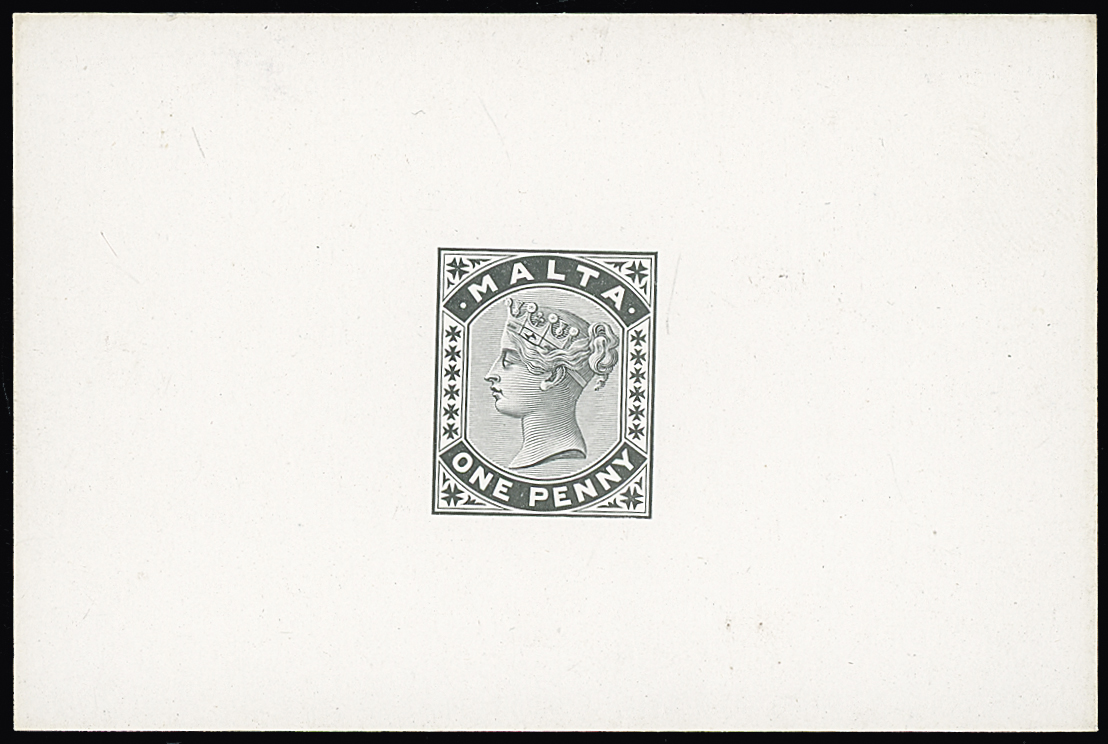 Malta: Issued Stamps: Queen Victoria: 1885-90, Proofs, 1d. die proof in black on glazed card (92 x 60mm), unmarked, fine. Photo. (Image1)