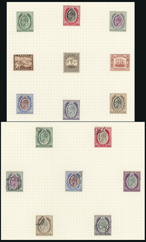 1371 imageMalta: Collections: A K.E.VII selection on leaves, incl. 1903-04 set used, 1904-14 sets mint and used, etc. (56) (Image1)