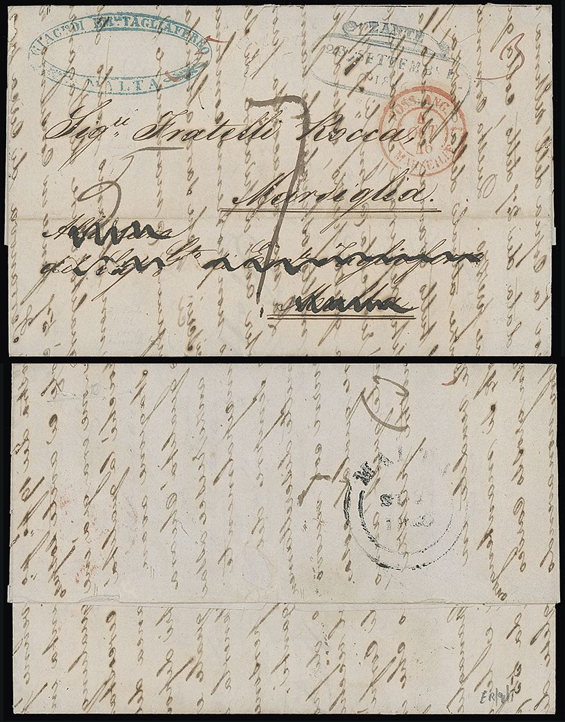 TAGLIATERRO/MALTA” and with Malta and Marseille datestamps, fine. Photo. (Image1)