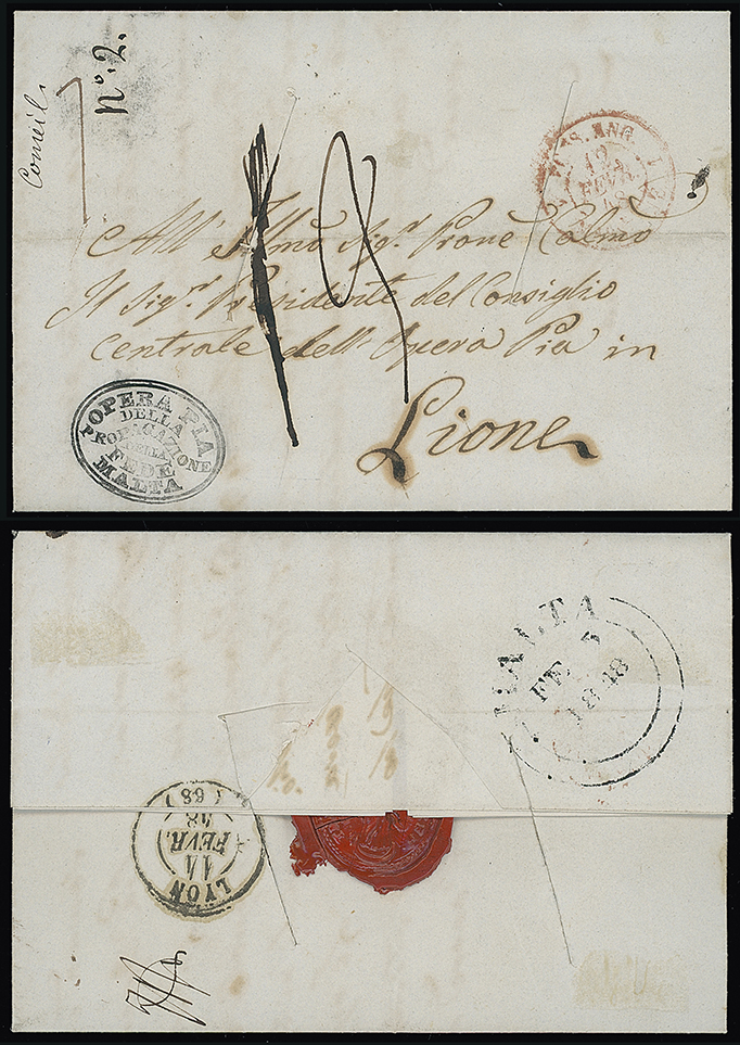DELLA FEDE MALTA” in black and with Malta, Marseille and Lyon datestamps, fine. Ex Eastgate. Photo. (Image1)
