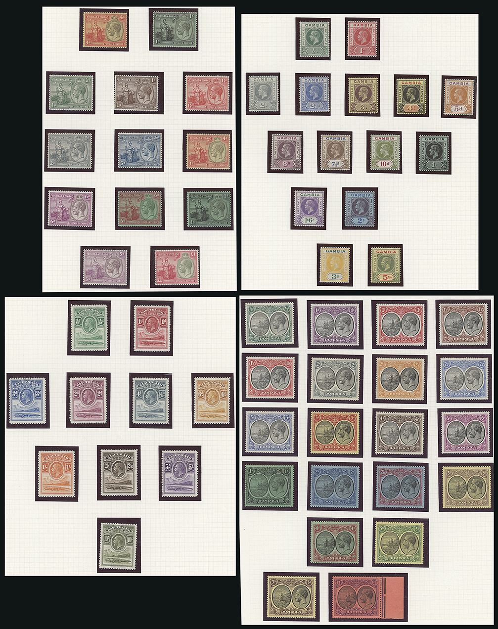 1913-21 to $2 and 1922-33 to $5 mint, Cayman Is. 1902-03, 1905 and 1907 sets, 1907-09 to 10s., 1912-20 and 1921-26 sets mint, Dominica 1921-22 set mint, Grenada 1921-26 set mint, Jamaica 1912-20 set and 1919-21 to 10s. mint, Montserrat 1916-22 set