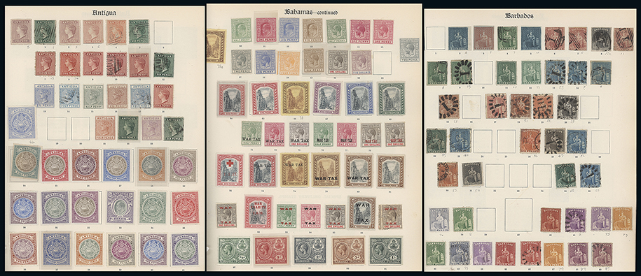 10d. used (faults), 1893 50c. and 1908 Tercentenary set mint, Newfoundland, good British West Indies incl. Antigua 1903-07 and 1908-17 sets mint, Bahamas 1884-90 to £1 used, 1901-03 set, 1902-07 to 5s. and 1911-19 set mint, Barbados 1882-86 to 5s.,